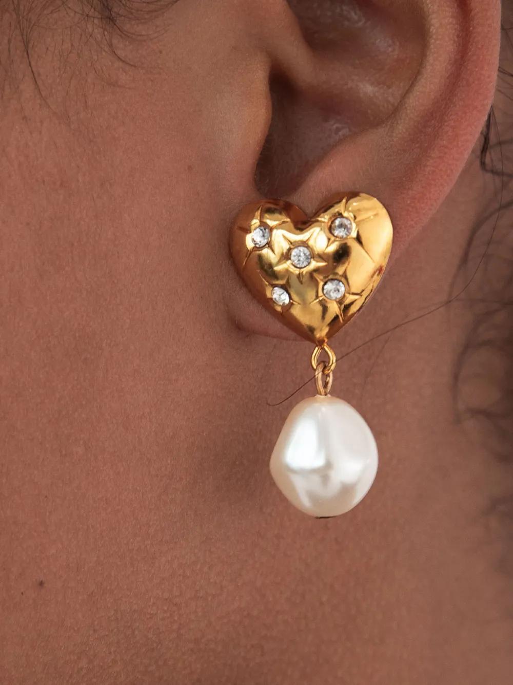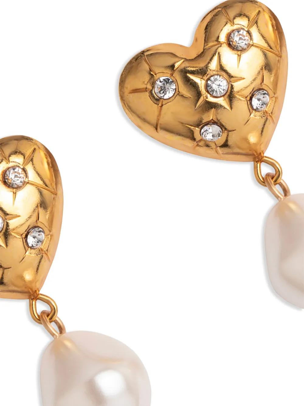 gold-tone brass 18kt gold plated baroque pearl post-back fastening polished finish heart motif crystal embellishment for pierced ears These earrings come as a pair.
