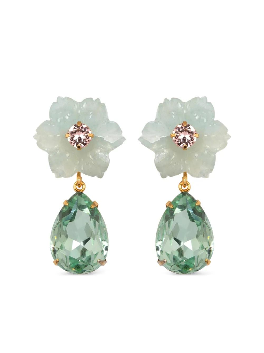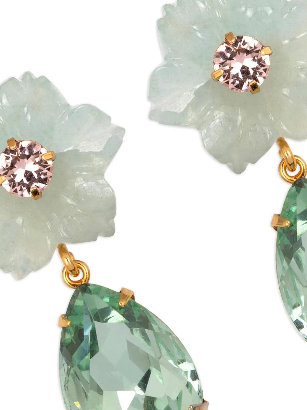gold-tone carved-flower embellishment pear-cut aquamarine drop gold-tone metal These earrings come as a pair. Normal everyday use and external agents may reduce the lustre of gemstones and gold surfaces. To maintain, use specific, non-abrasive products specially meant for cleaning jewellery.