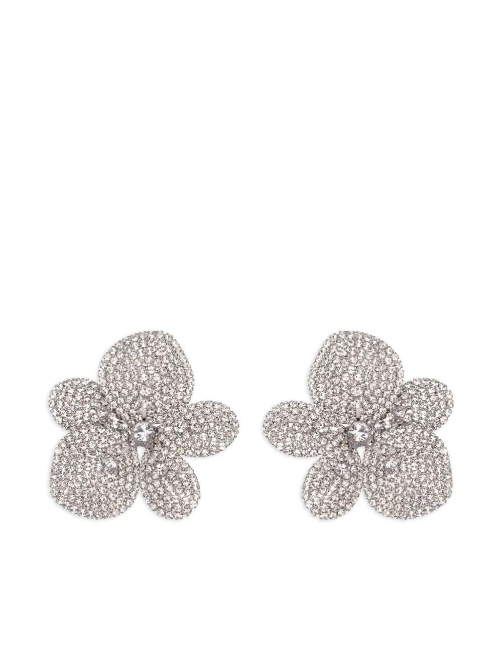 silver rhodium plated metal flower shape crystal embellishment pave setting four petals post-back fastening for pierced ears These earrings come as a pair