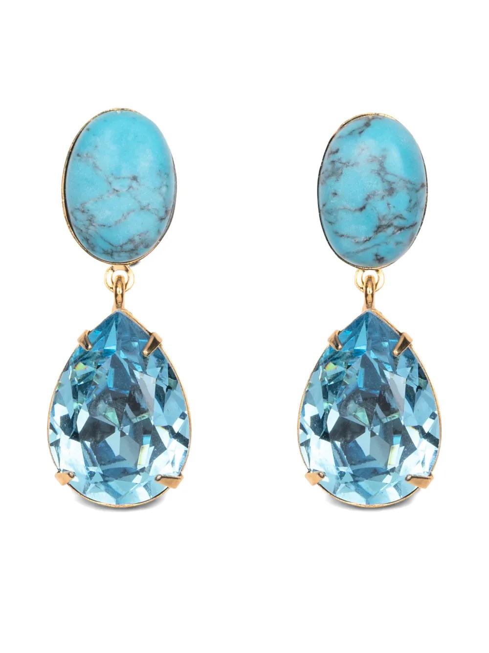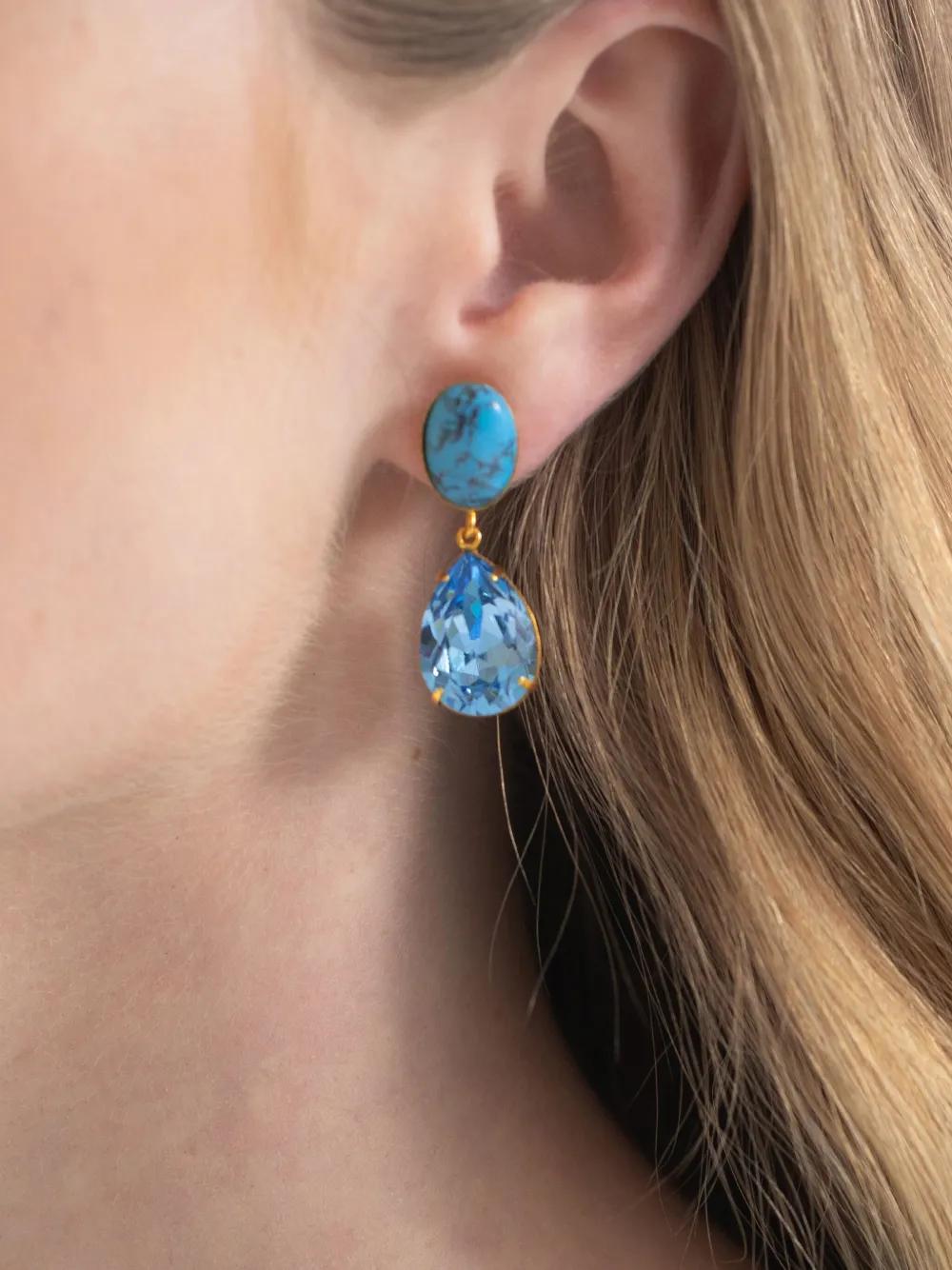 turquoise blue-green drop design crystal embellishment These earrings come as a pair.