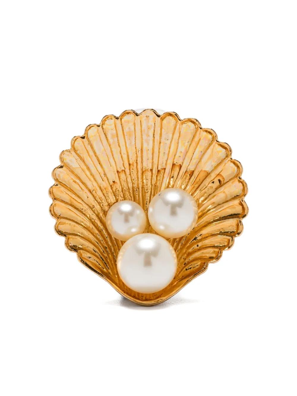 gold-tone shell embellishment pearl embellishment post-back fastening These earrings come as a pair.