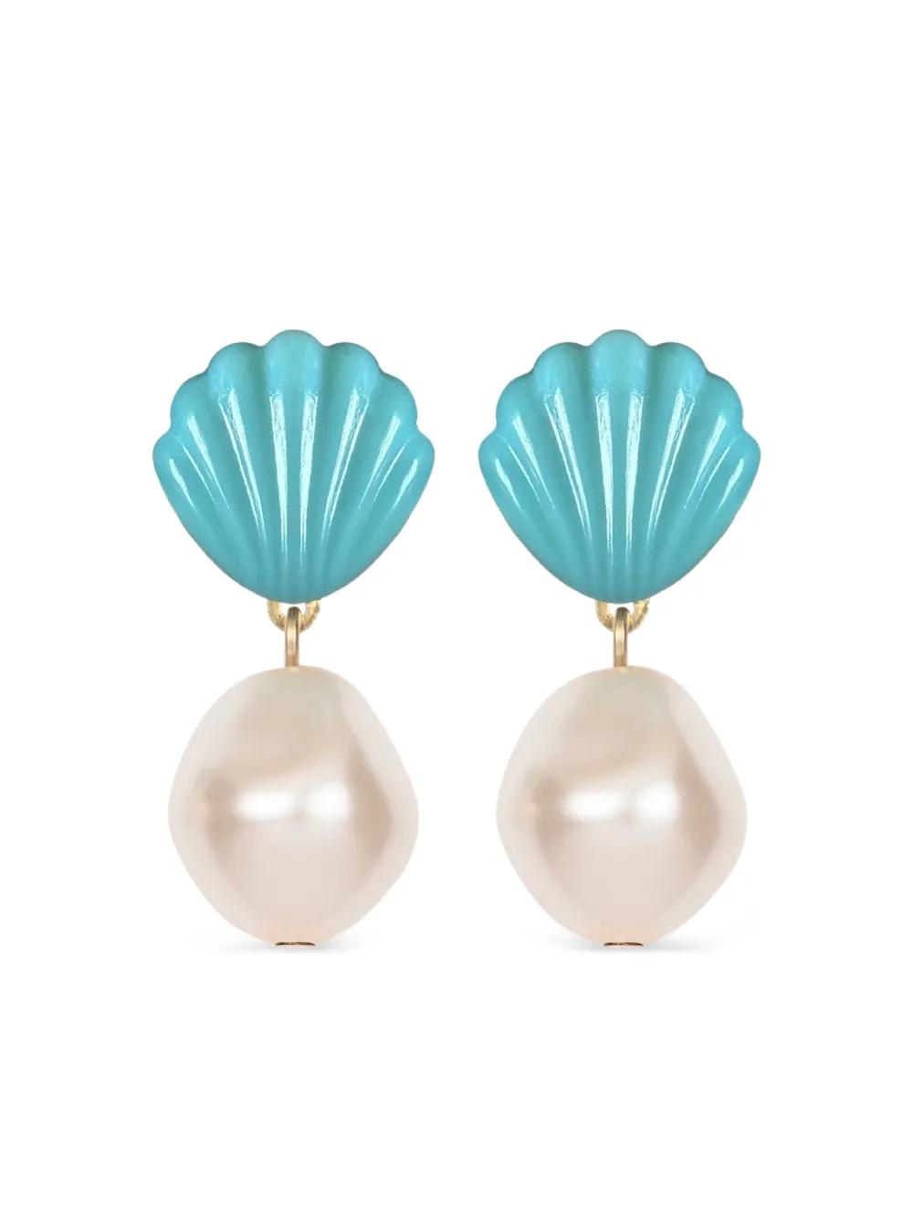 turquoise blue-green drop design faux-pearl detailing These earrings come as a pair.