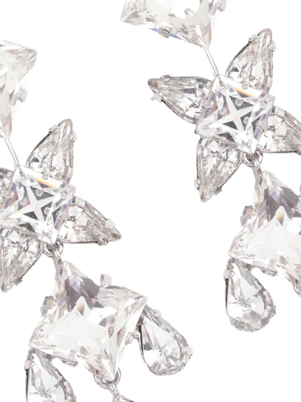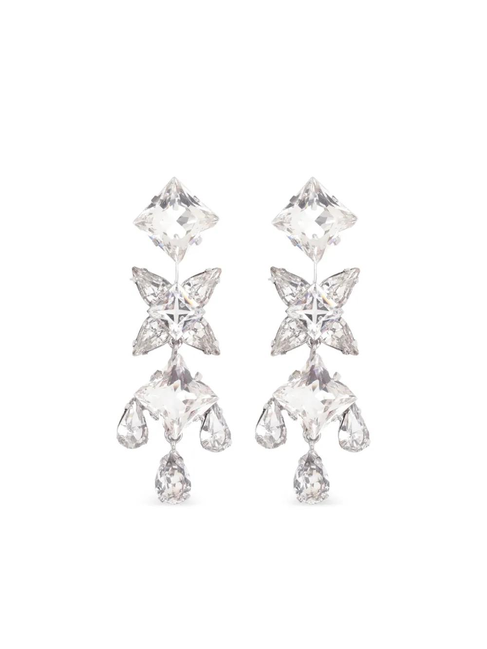silver rhodium plated tiered construction drop design square crystals teardrop crystals