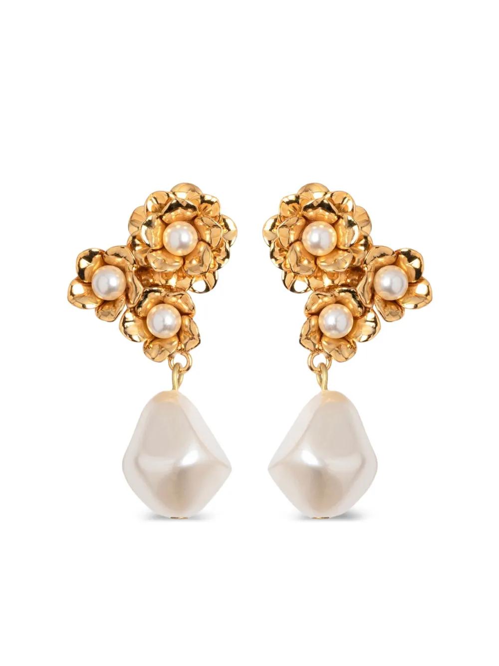 gold-tone flower embellishment pearl detail drop design These earrings come as a pair. Normal everyday use and external agents may reduce the lustre of gemstones and gold surfaces. To maintain, use specific, non-abrasive products specially meant for cleaning jewellery.