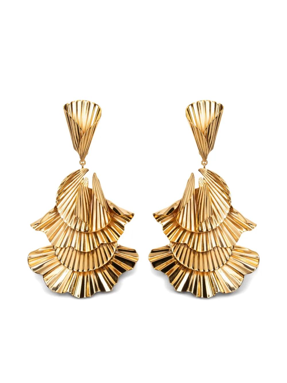 gold-tone post-back fastening for pierced ears These earrings come as a pair. Normal everyday use and external agents may reduce the lustre of gemstones and gold surfaces. To maintain, use specific, non-abrasive products specially meant for cleaning jewellery.