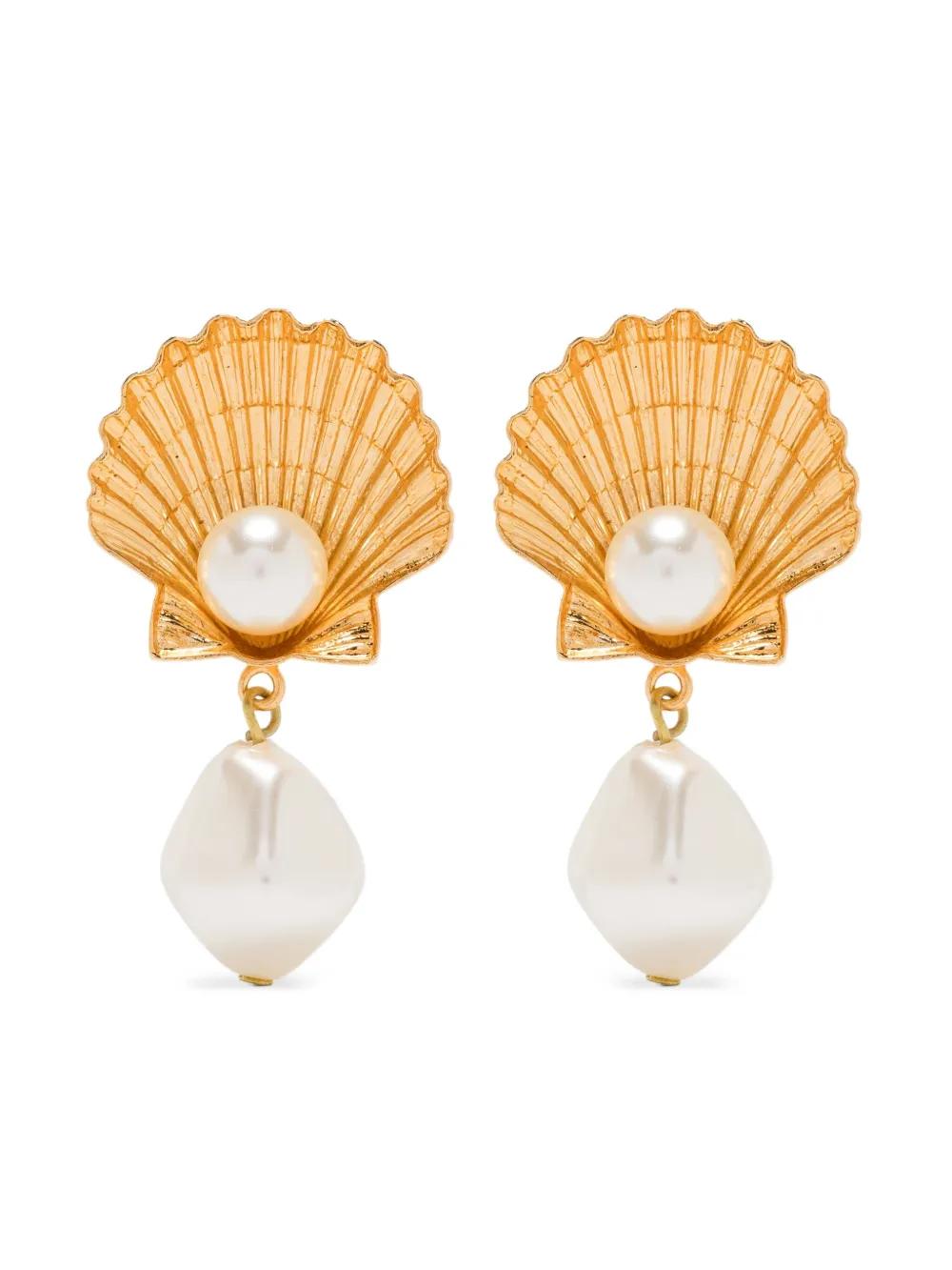 gold-tone pearl embellishment shell design These earrings come as a pair.