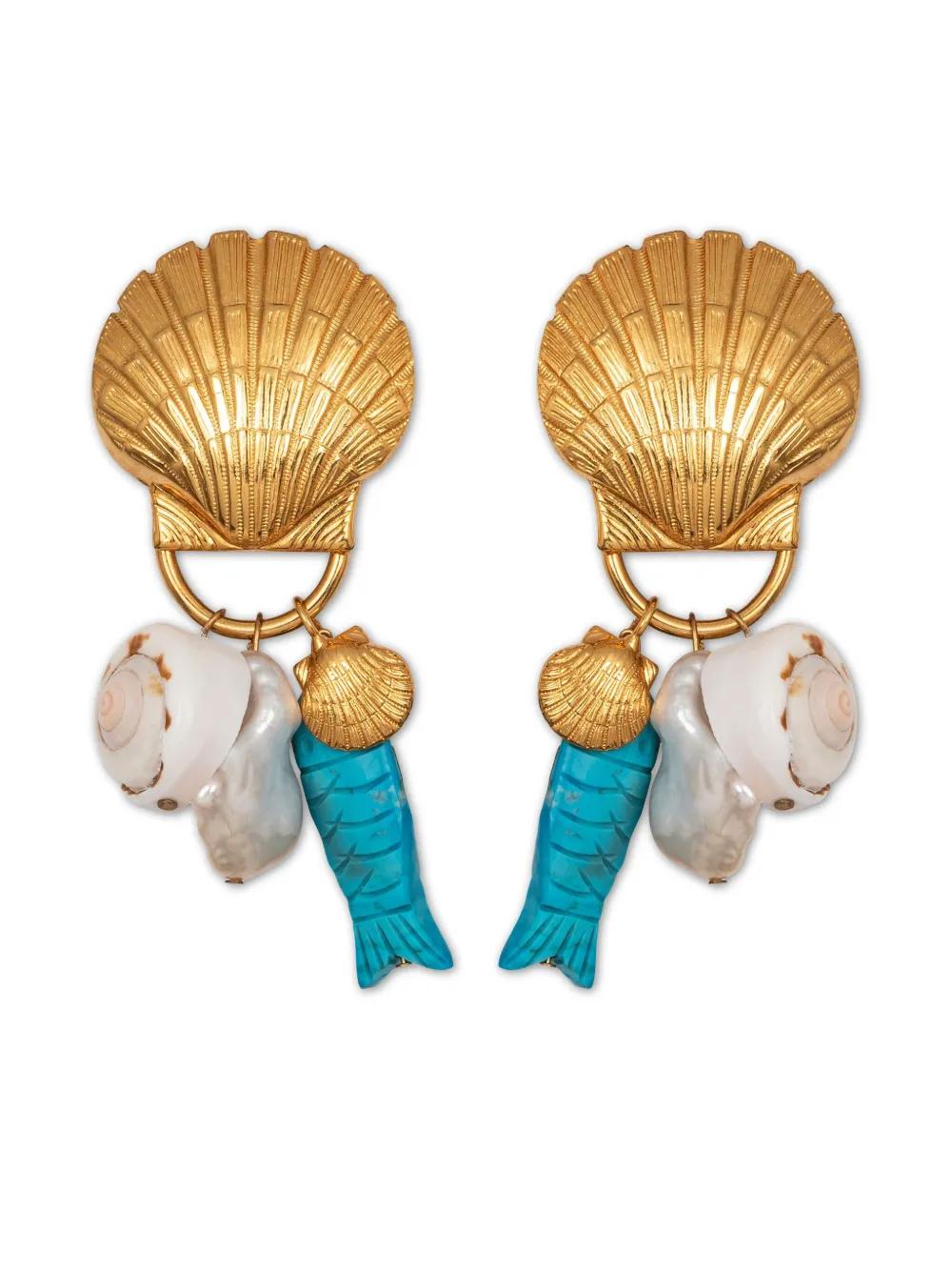 gold-tone shell pendant These earrings come as a pair. Normal everyday use and external agents may reduce the lustre of gemstones and gold surfaces. To maintain, use specific, non-abrasive products specially meant for cleaning jewellery.