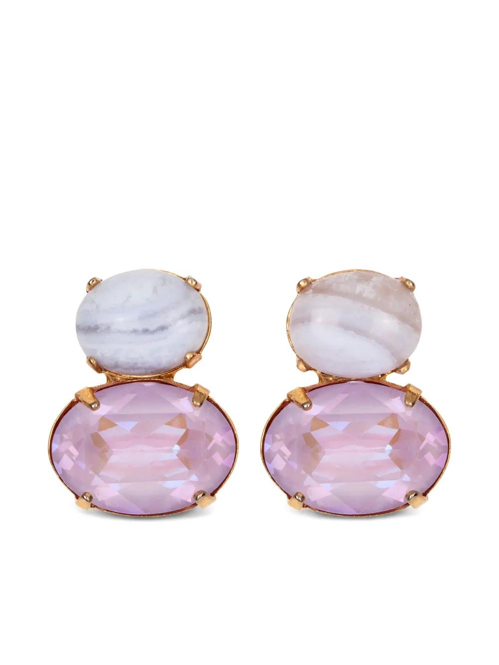 light pink crystal embellishment These earrings come as a pair. Normal everyday use and external agents may reduce the lustre of gemstones and gold surfaces. To maintain, use specific, non-abrasive products specially meant for cleaning jewellery. This jewellery is crafted with natural gemstones. As such, each piece is unique and may differ slightly in colour or texture from the item pictured.