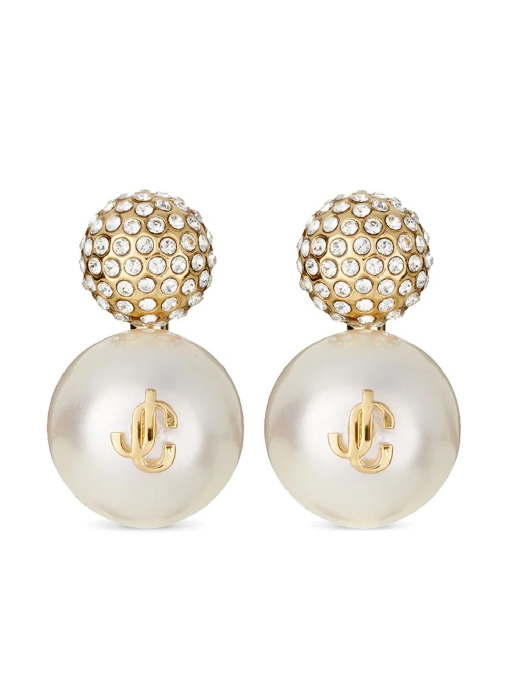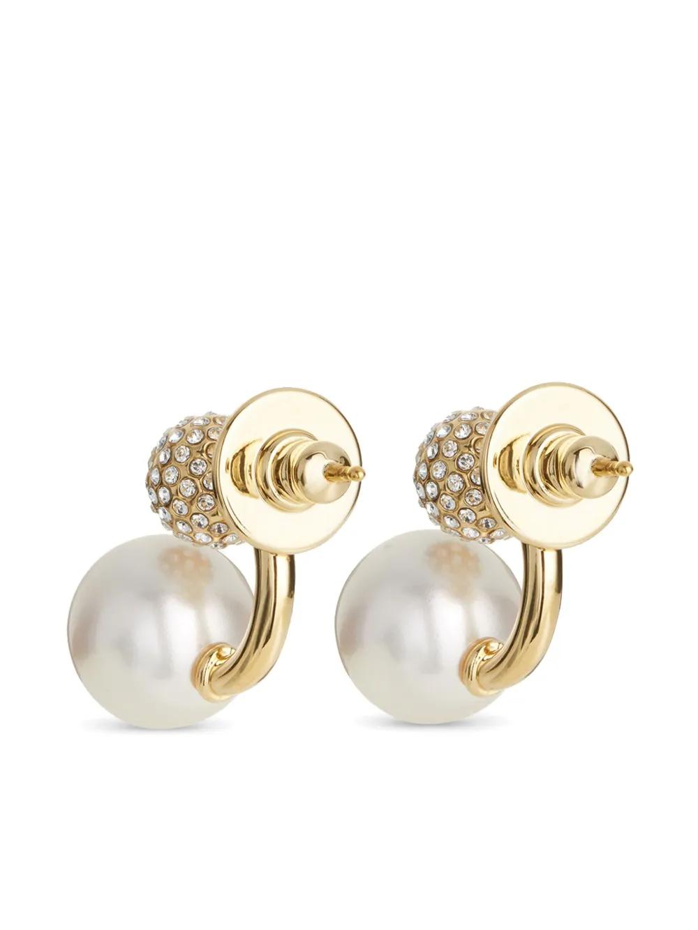 gold-tone rounded stud design pearl detail gold-tone logo plaque crystal embellishment gold-tone hardware post-back fastening polished finish for pierced ears