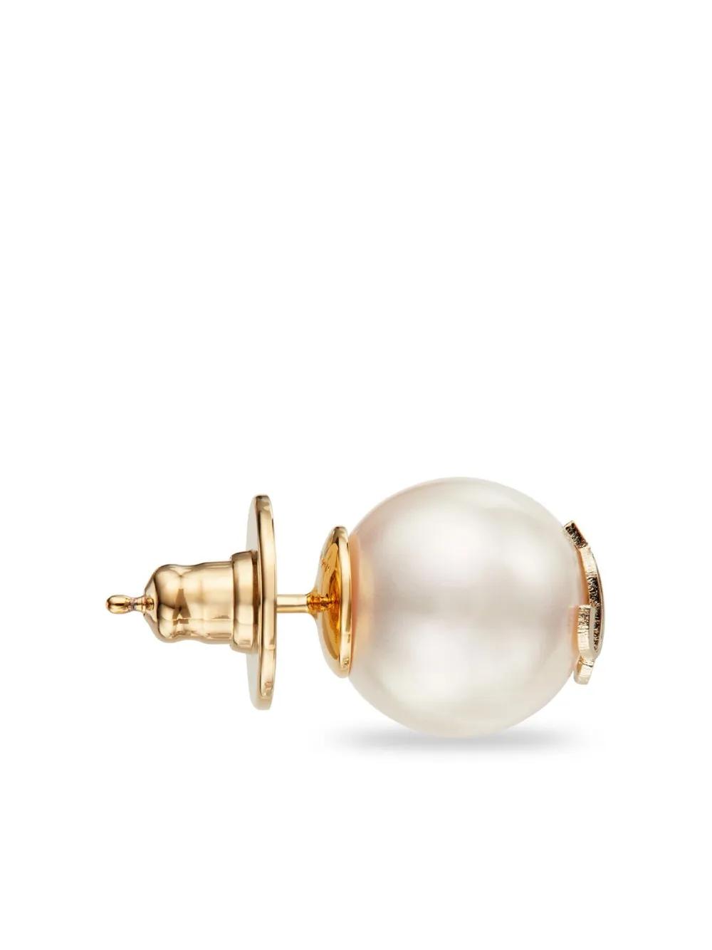 gold-tone/chalk white pearl detail debossed logo to the front clasp fastening for pierced ears These earrings come as a pair.