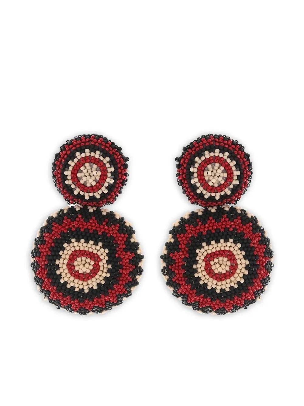 blac/red beaded detail circular shape patterned beadwork These earrings come as a pair.