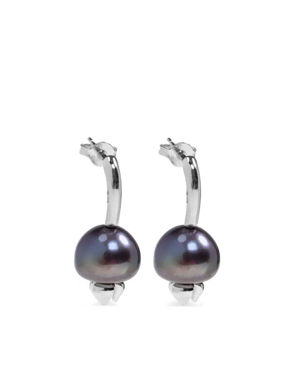 silver pearls embellishment curved stem claw setting post-back fastening for pierced ears These earrings come as a pair.