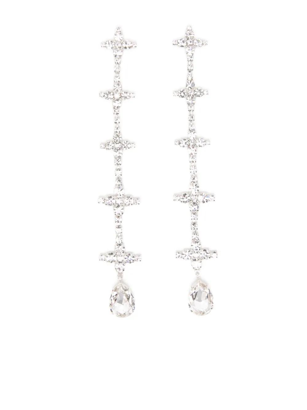 silver-tone crystal embellishment drop design post-back fastening teardrop accent These earrings come as a pair.