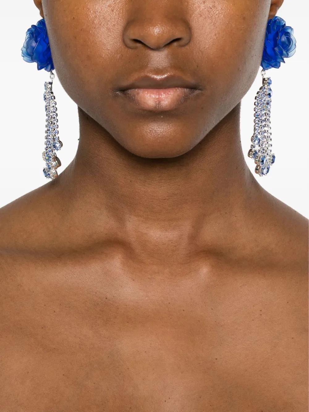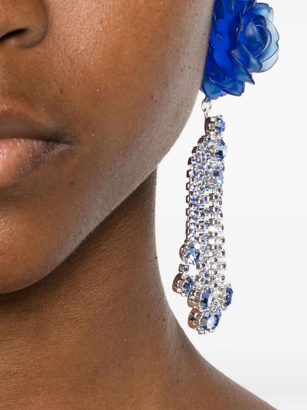 blue rose detail crystal embellishment drop design silver-tone hardware for pierced ears These earrings come as a pair.