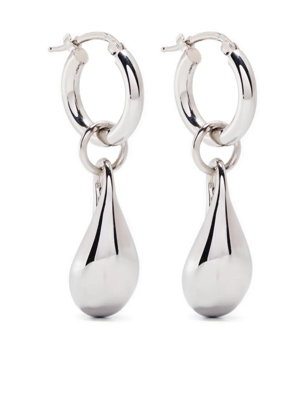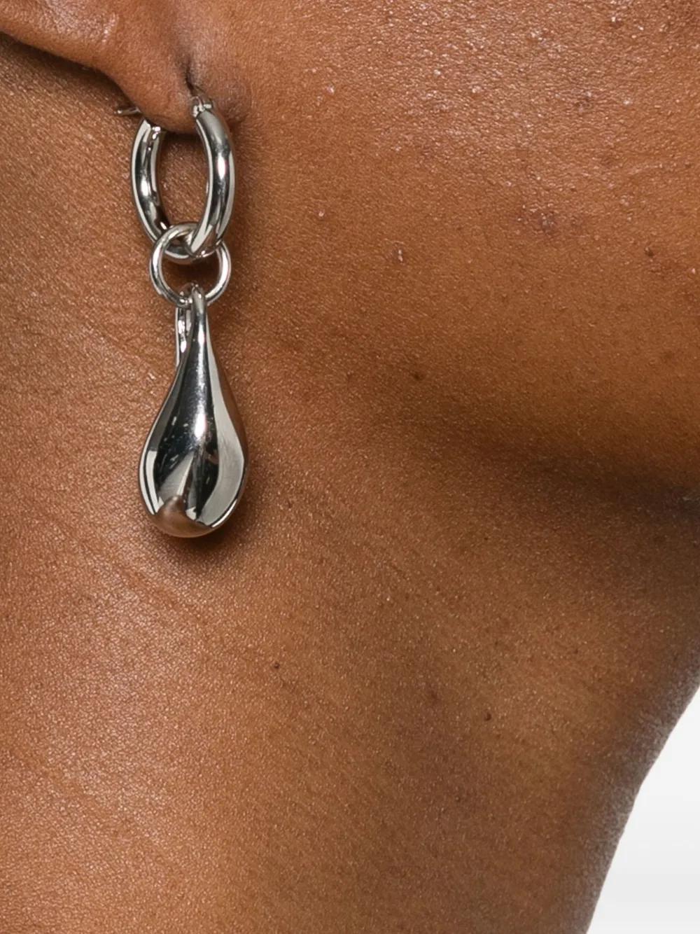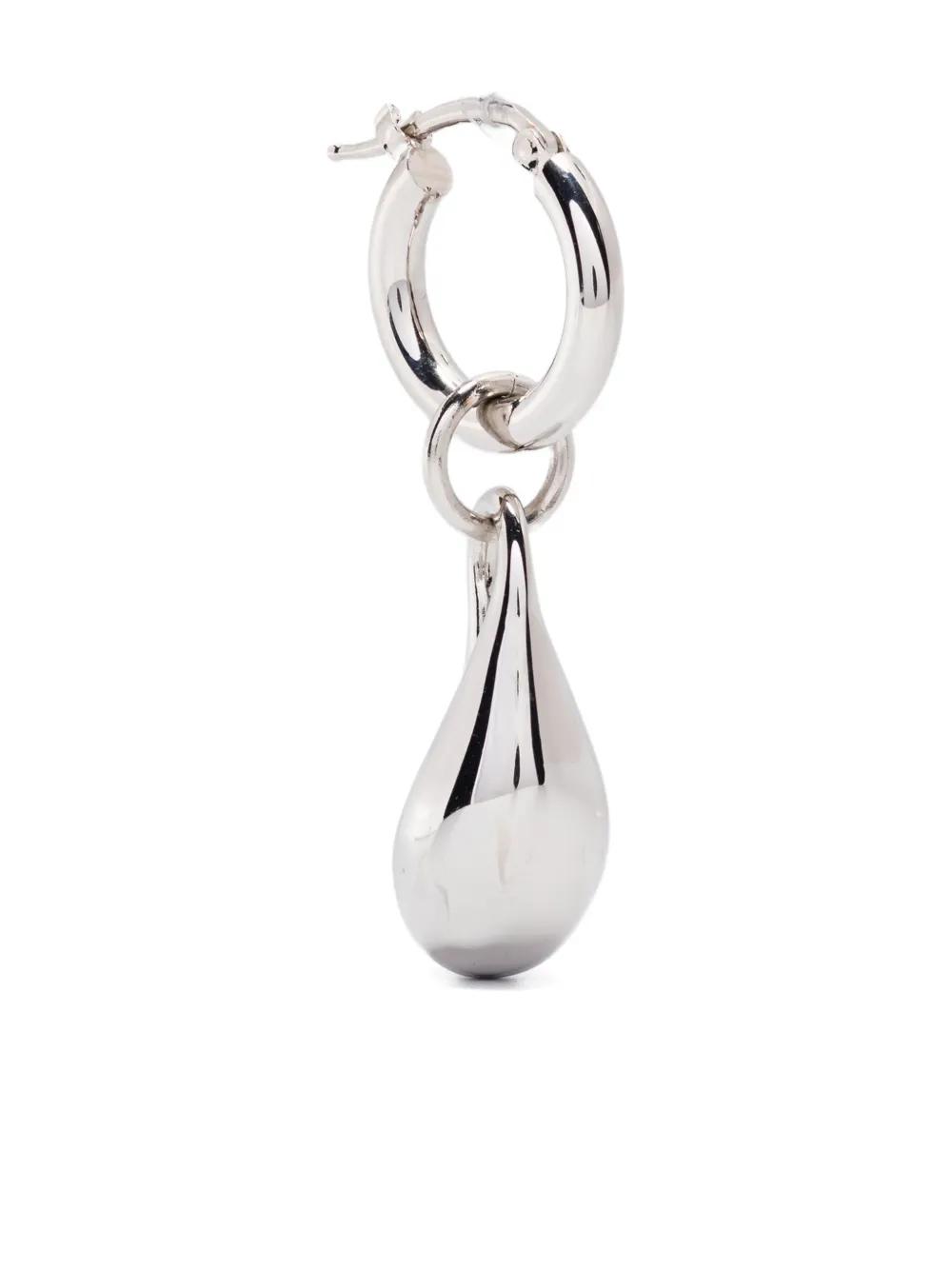 silver-tone hoop design teardrop charm polished finish These earrings come as a pair.