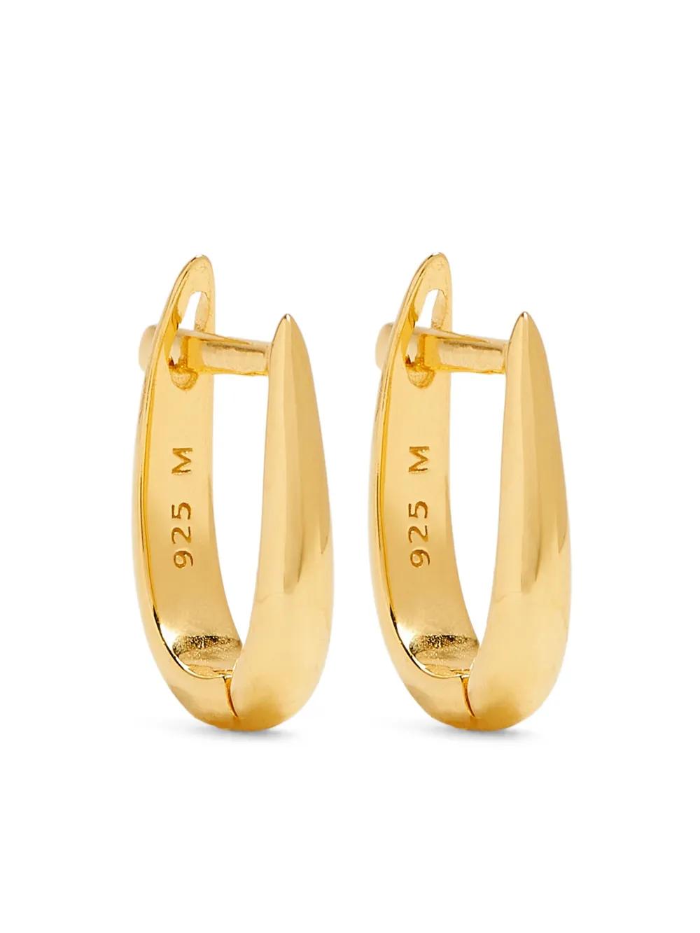 silver gold plated huggie hoop design polished finish debossed internal logo hinge-pin fastening for pierced ears These earrings come as a pair.