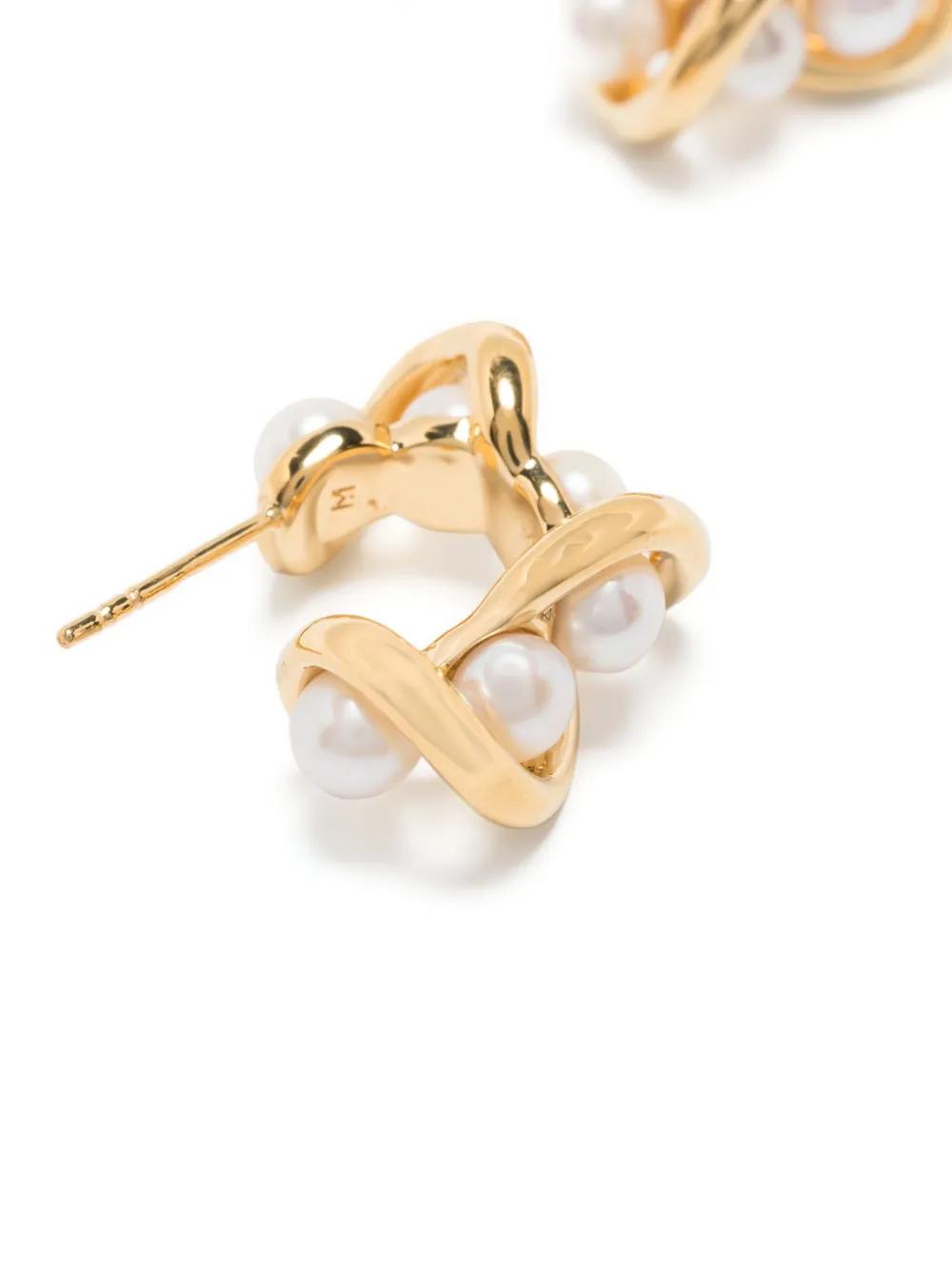 gold-tone 18kt gold plated freshwater pearls twisted hoop design butterfly fastening These earrings come as a pair.