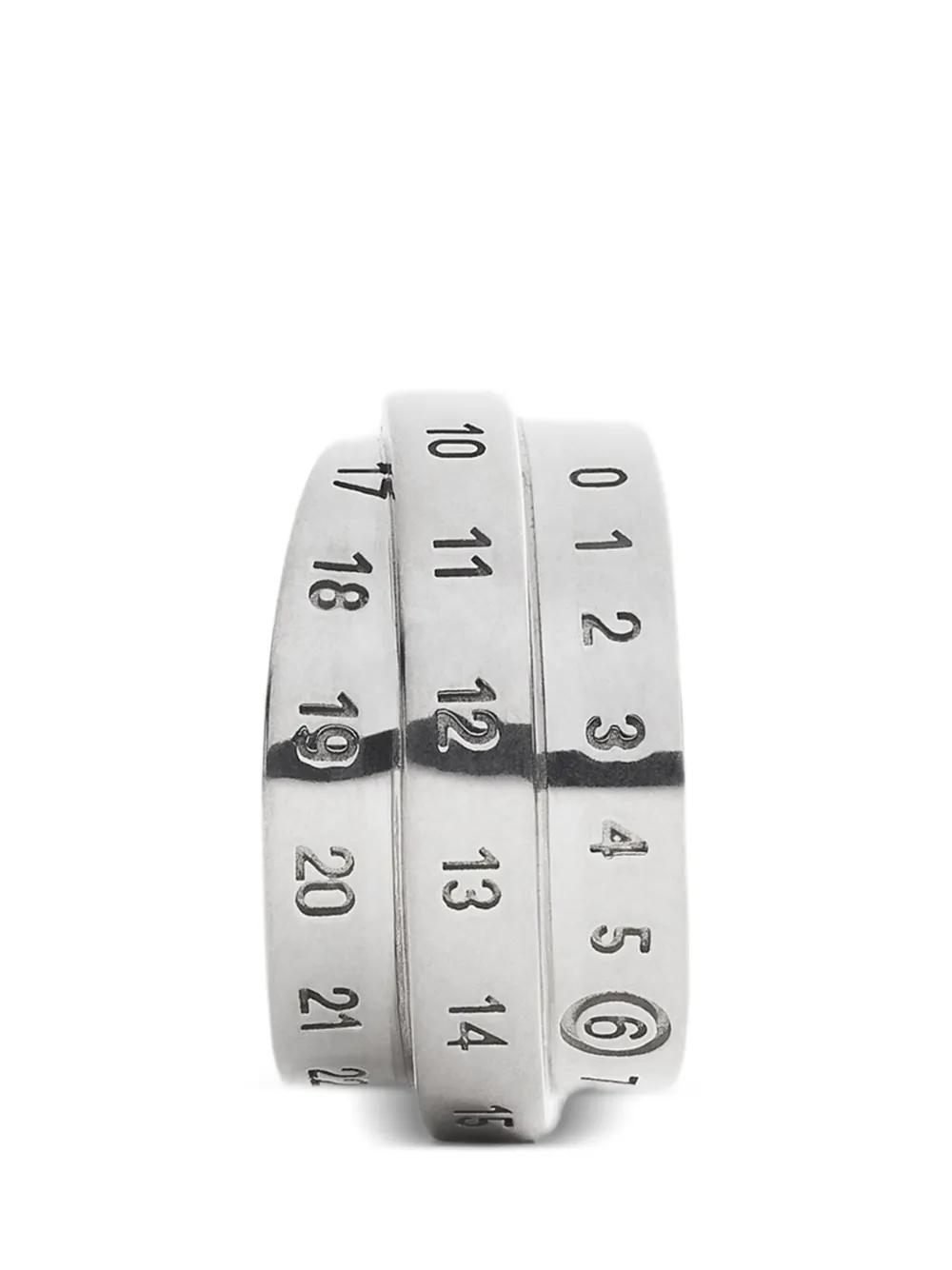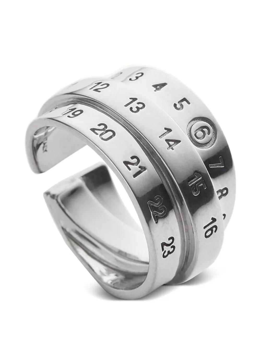 silver-tone open band design signature numbers motif stackable design This is a single earring.