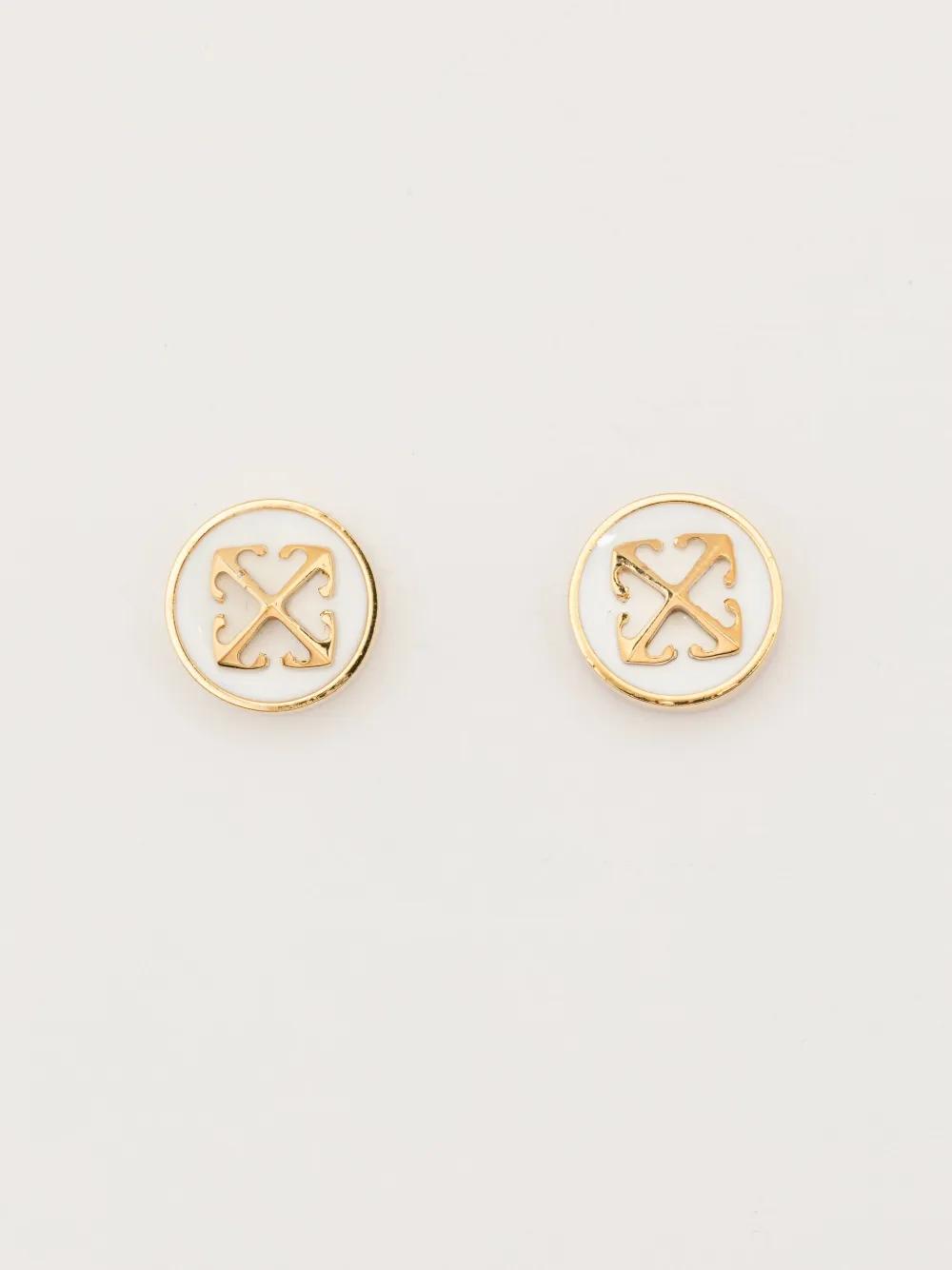gold-tone polished finish circular design signature Arrows motif post-back fastening These earrings come as a pair.