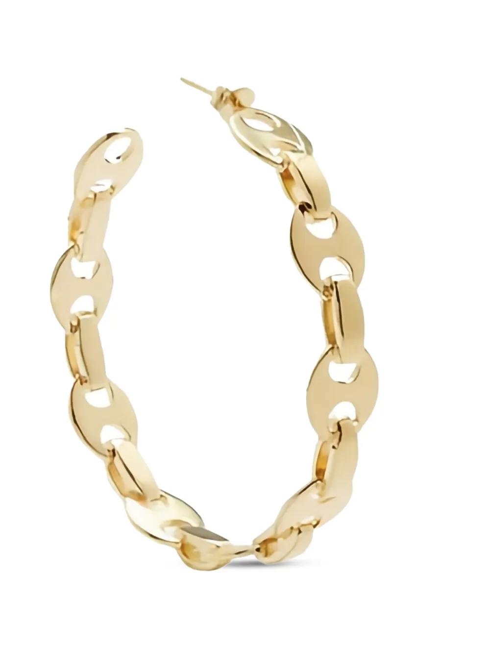 gold tone linked design polished finish secure fastening lightweight feel striking statement piece for pierced ears These earrings come as a pair.