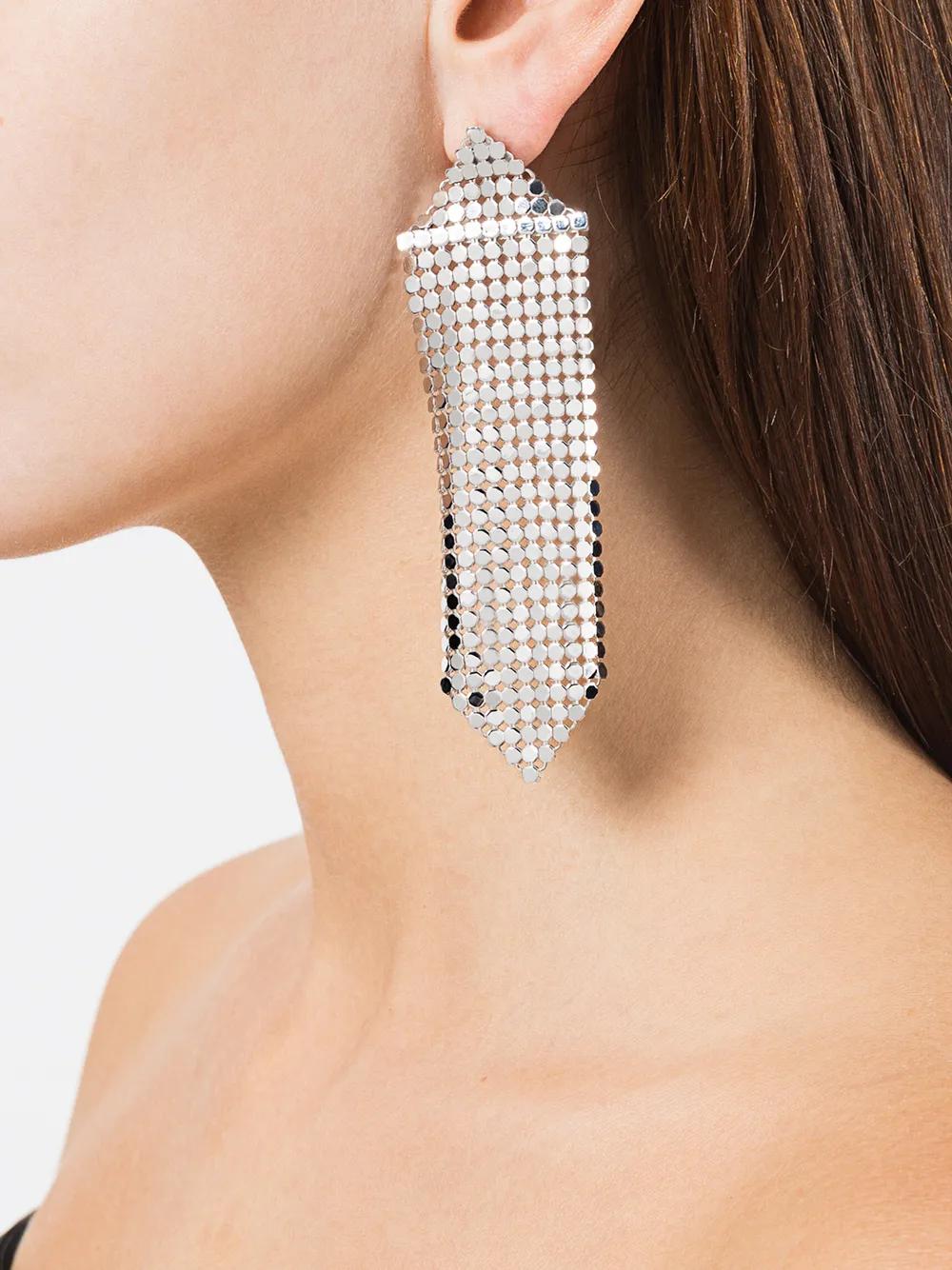 Silver-tone chain mail earring from Paco Rabanne. This is a single earring.