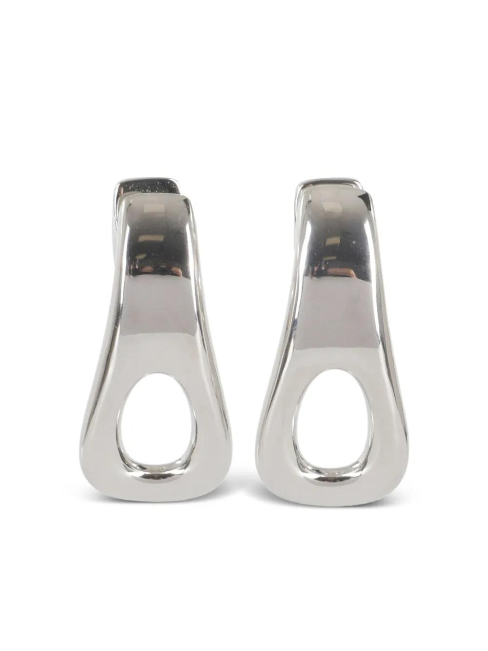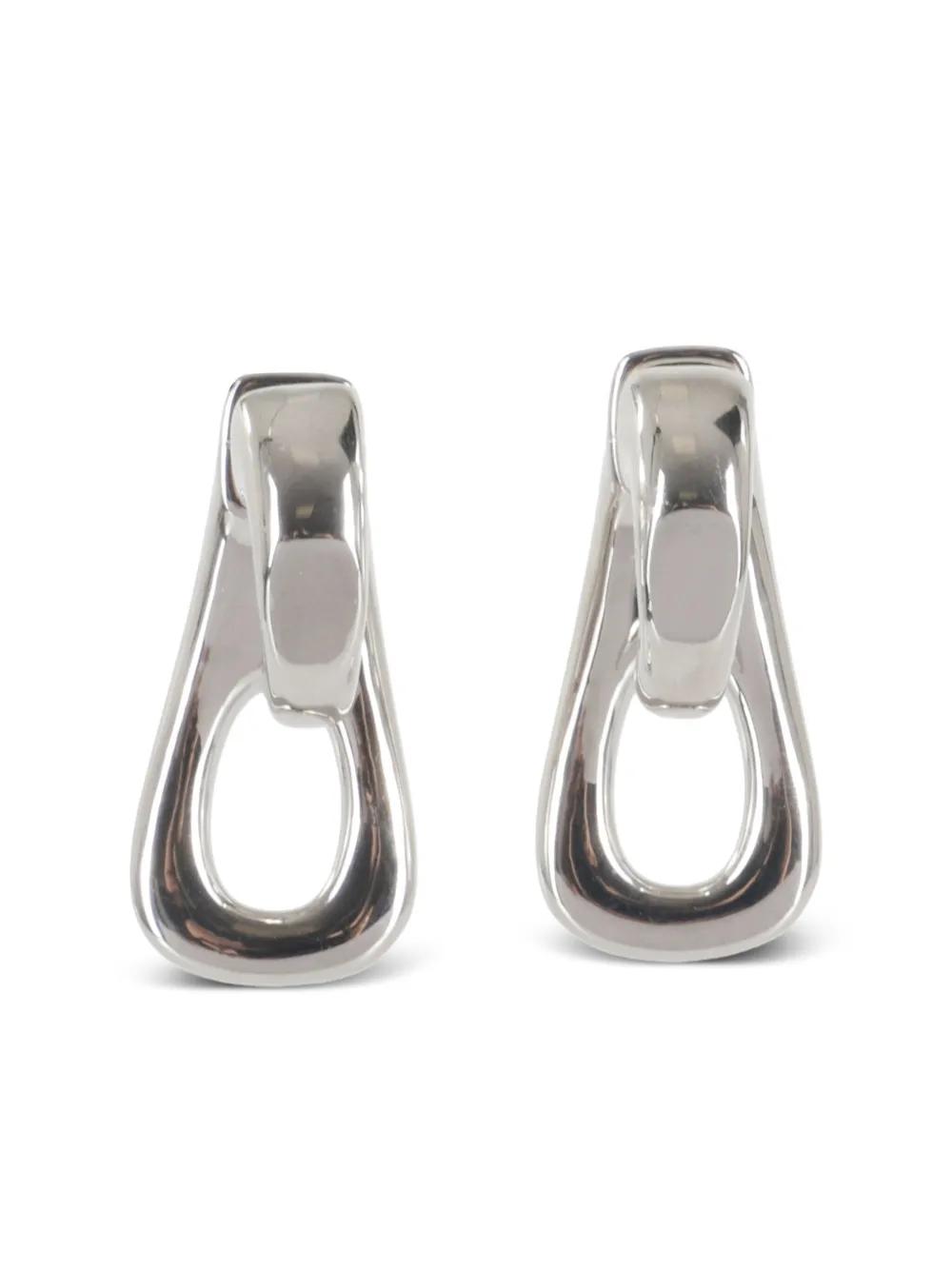 silver polished finish drop design open detail for pierced ears These earrings come as a pair.