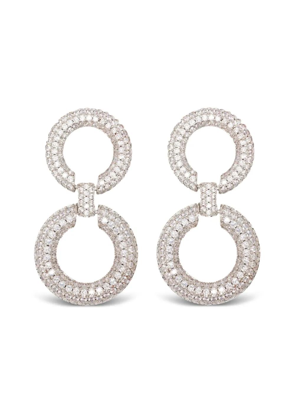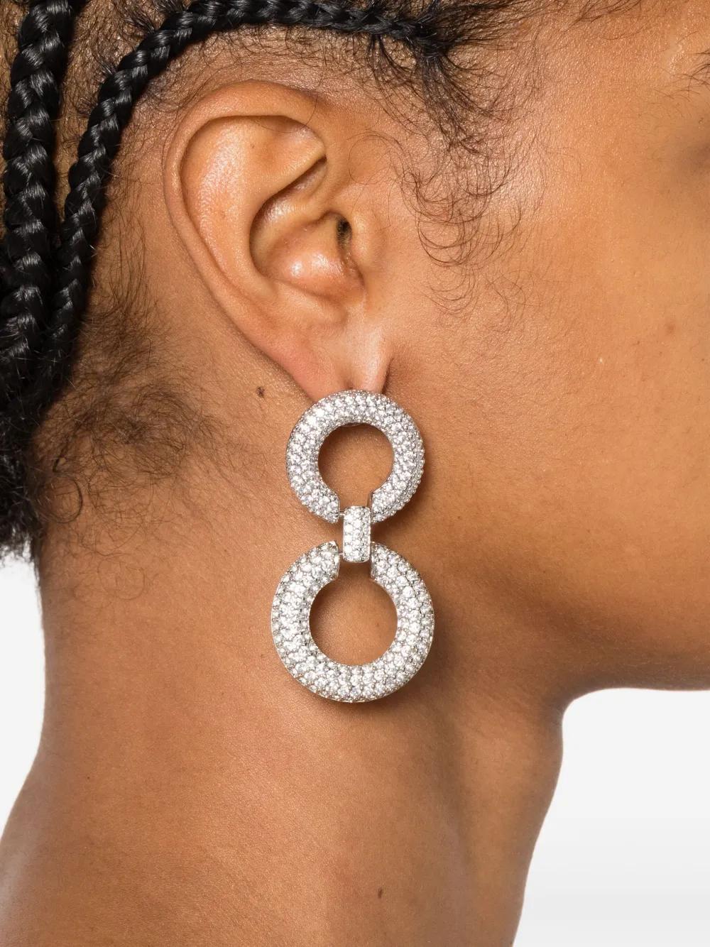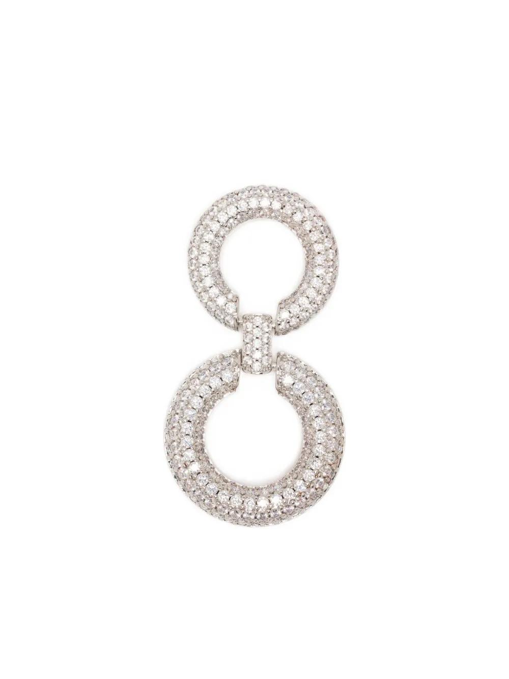silver double-circle design pavé setting embellished zirconias post fastening These earrings come as a pair.