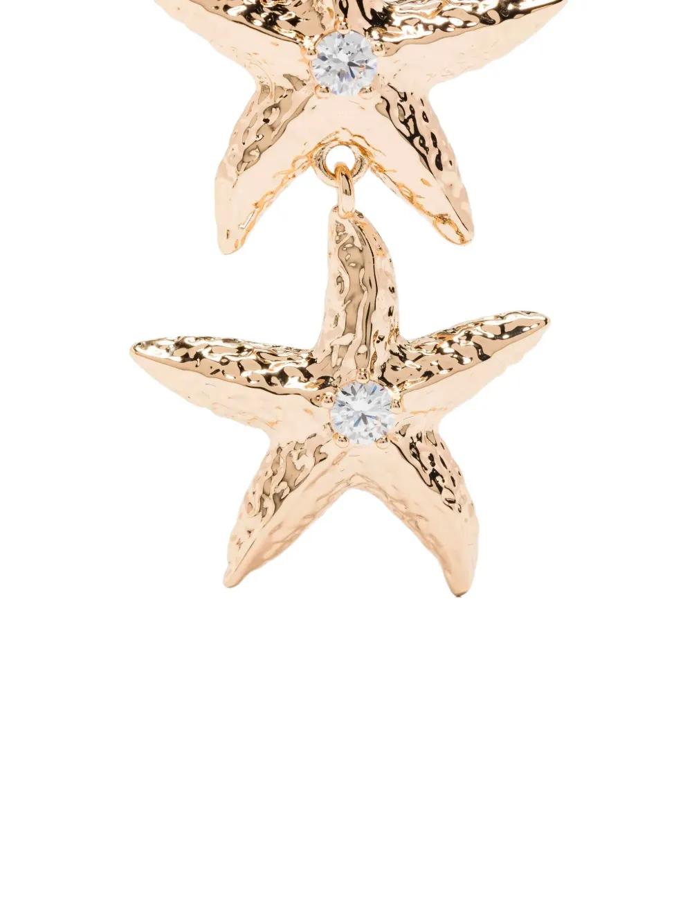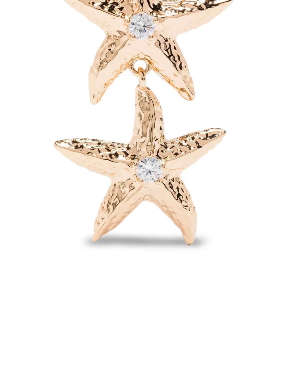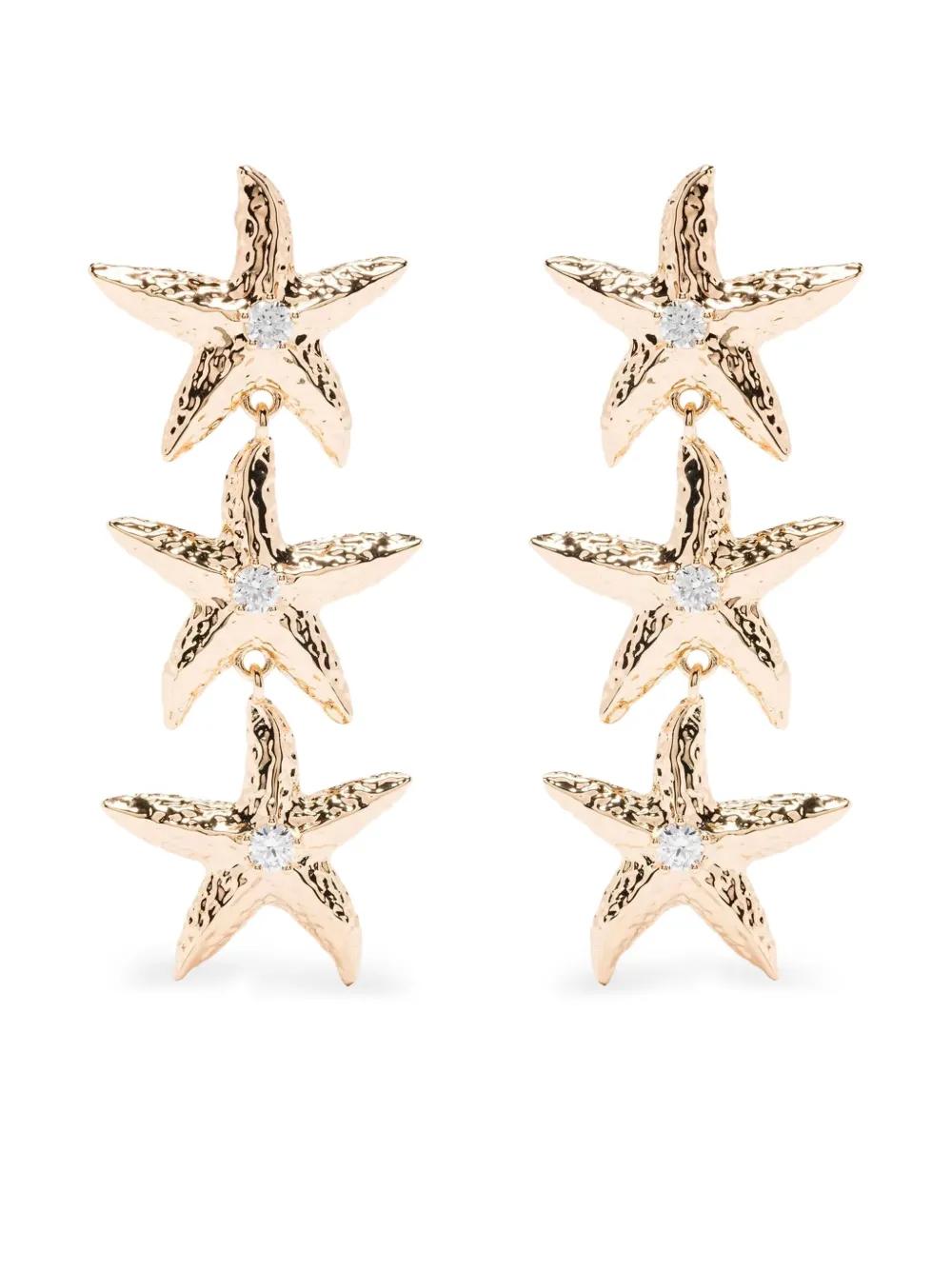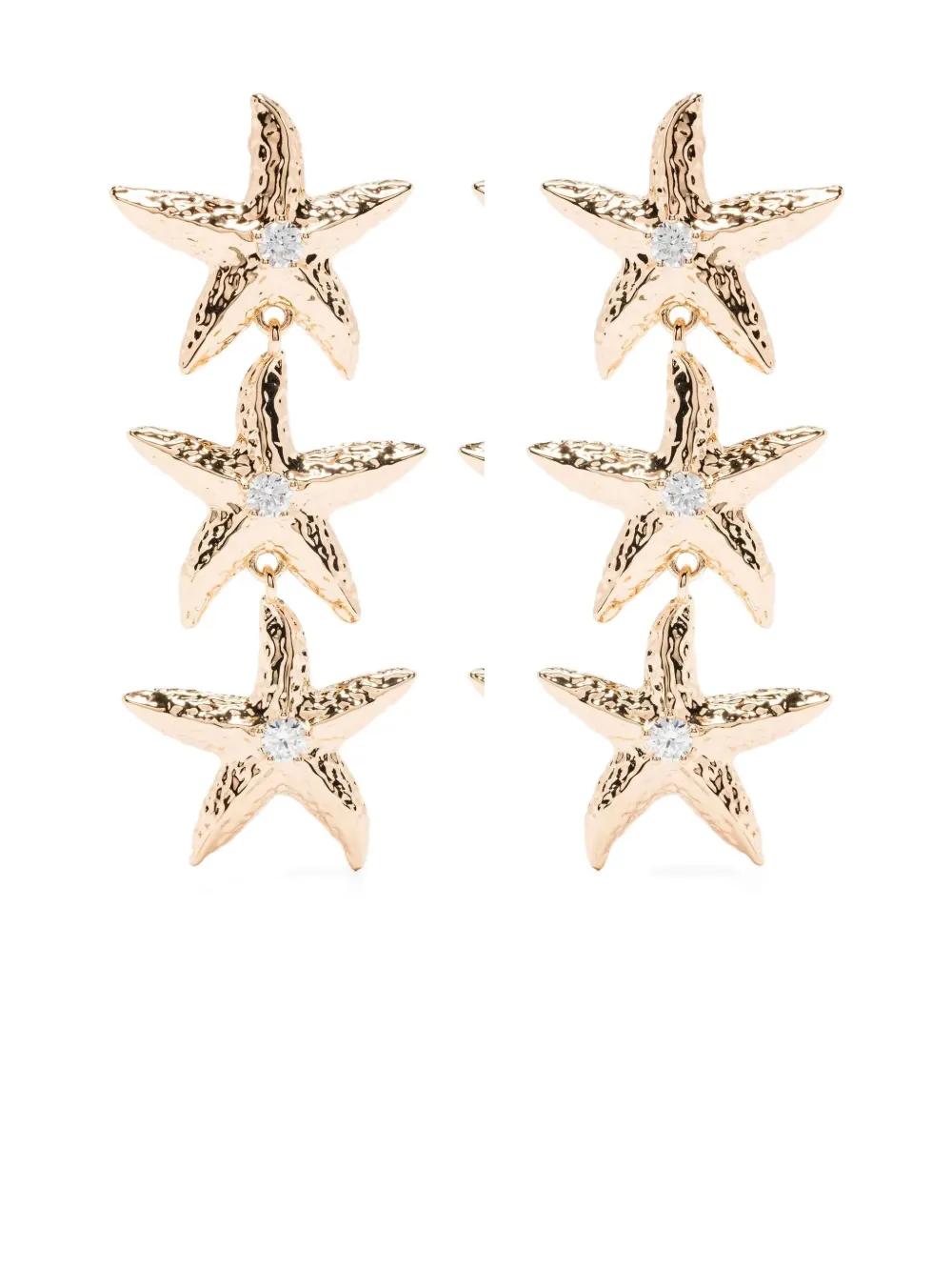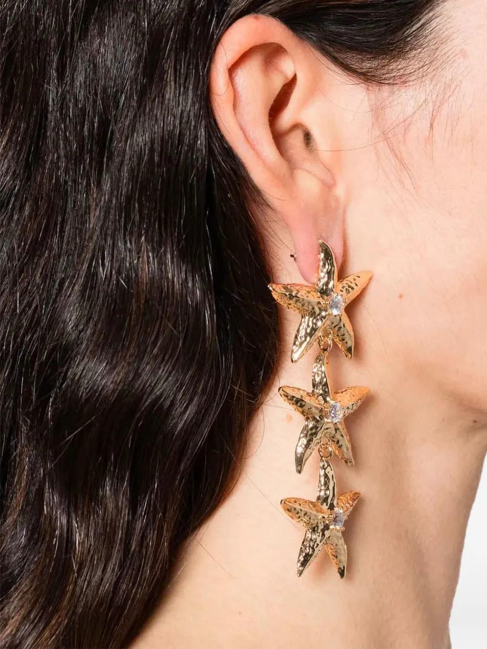 gold plated brass hammered texture three starfish design clear stones post fastening drop design