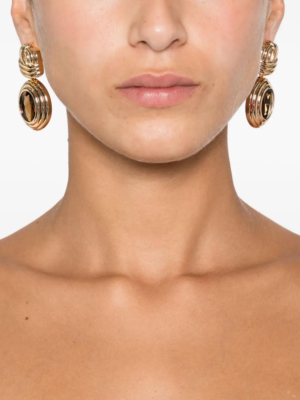 gold-tone twisted-rope detail oval-shaped stone smooth finish post fastening These earrings come as a pair. Normal everyday use and external agents may reduce the lustre of gemstones and gold surfaces. To maintain, use specific, non-abrasive products specially meant for cleaning jewellery.