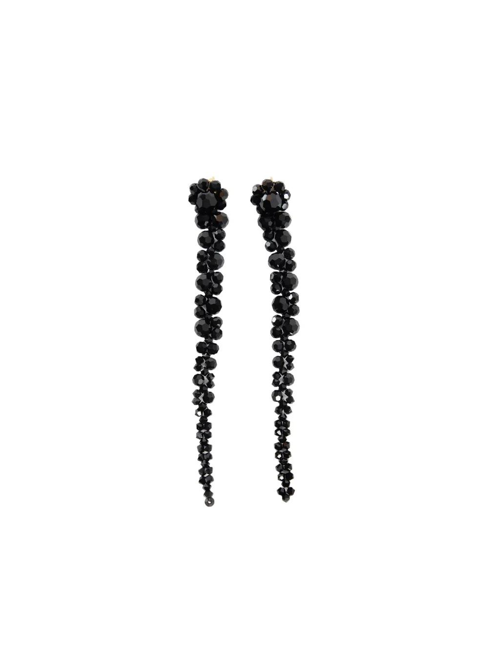 black bead embellishment crystal detail post-back fastening These earrings come as a pair.