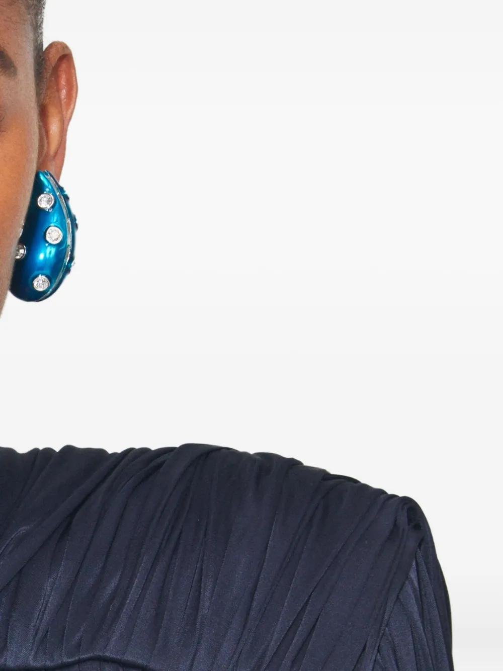 teal blue teardrop shape crystal embellishments polished finish hinged fastening metallic detail