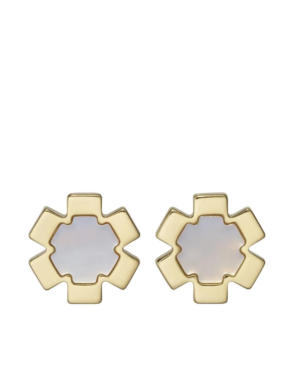 gold-tone mother-of-pearl detail stud style flower shape post back fastening These earrings come as a pair. Normal everyday use and external agents may reduce the lustre of gemstones and gold surfaces. To maintain, use specific, non-abrasive products specially meant for cleaning jewellery.