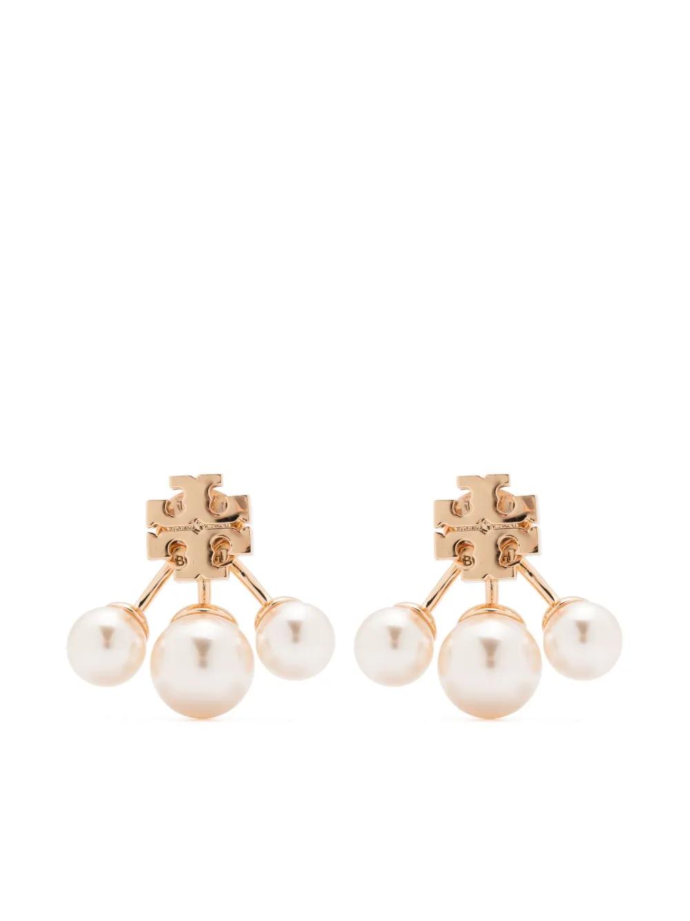 gold-tone brass metallic finish signature Double T motif logo-engraved gold-tone hardware faux-pearl embellishment post-back fastening for pierced ears These earrings come as a pair.