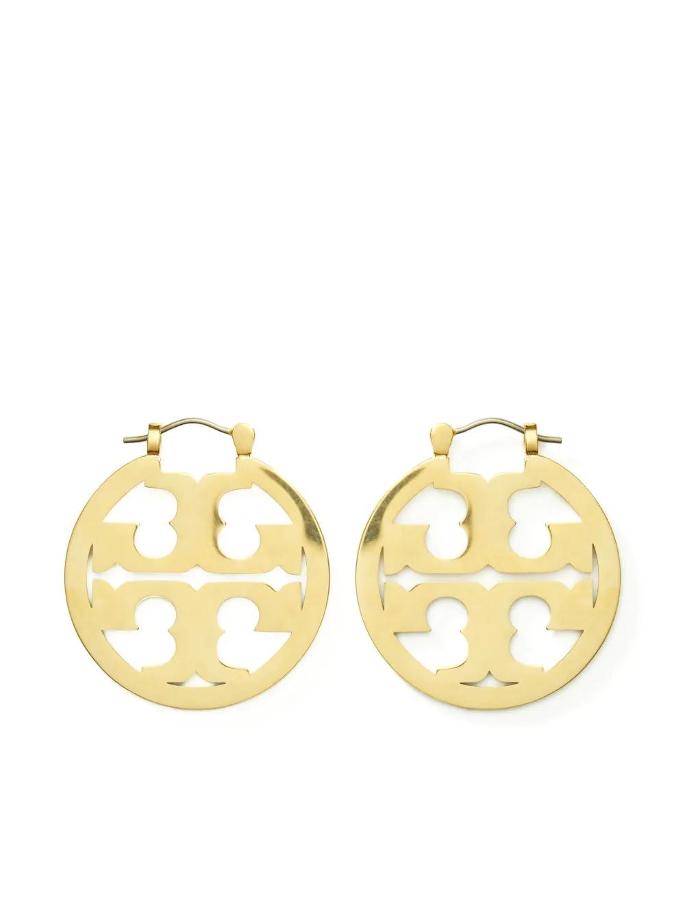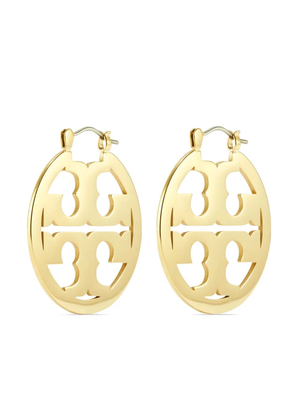 gold-tone polished finish logo plaque T-bar fastening for pierced ears These earrings come as a pair.