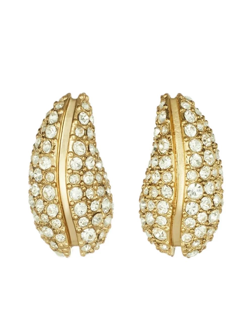 light brass pavé diamonds wave design linear detail post fastening teardrop shape These earrings come as a pair.