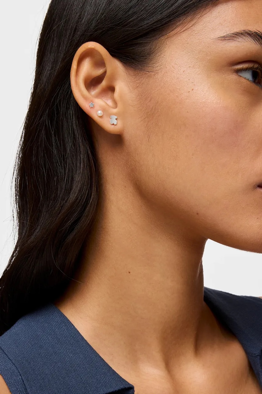 silver pear-shaped crystals round crystals flower-shaped crystals steel post-back fastening for pierced ears These earrings come as a pair.