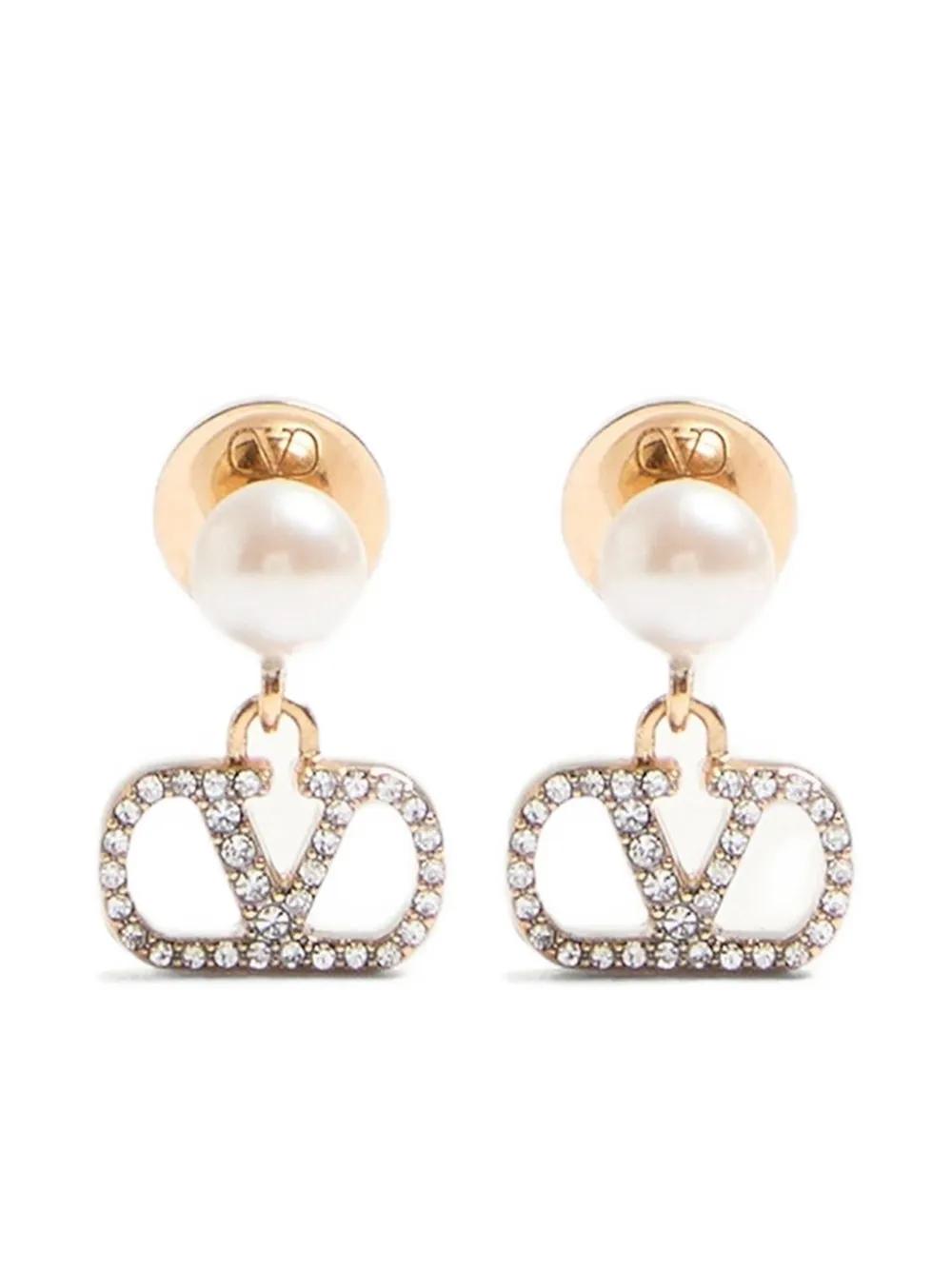 gold-tone crystal embellishment pin closure engraved logo These earrings come as a pair.