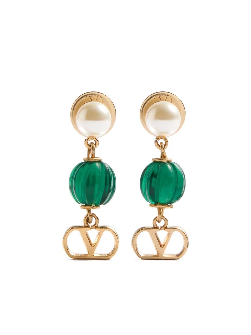 gold-tone post-back fastening faux-pearl detailing VLogo Signature pendant These earrings come as a pair.