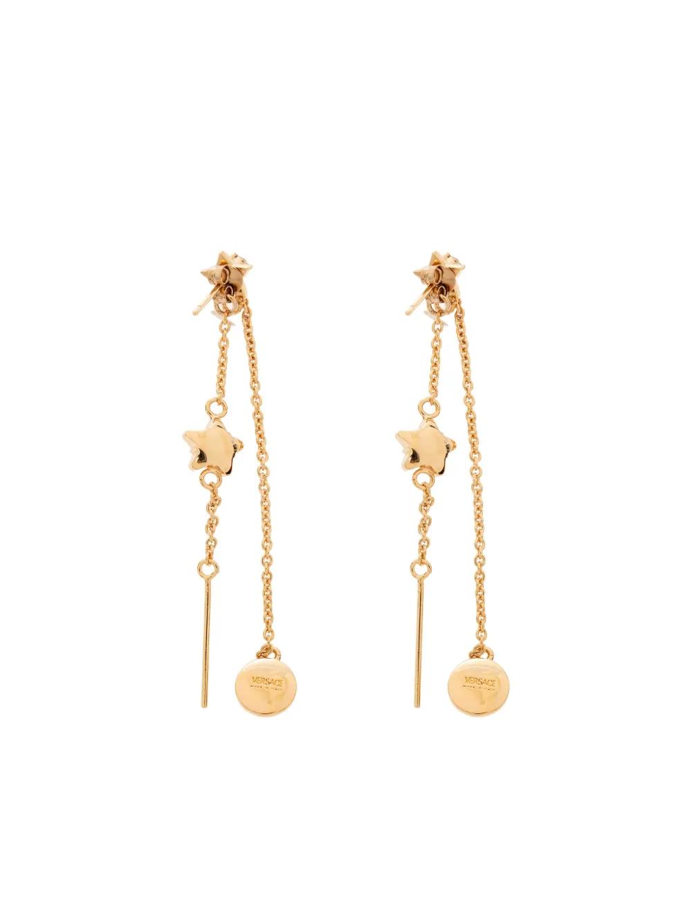 gold-tone star embellishment chain detail medusa detail post-back fastening drop design These earrings come as a pair.