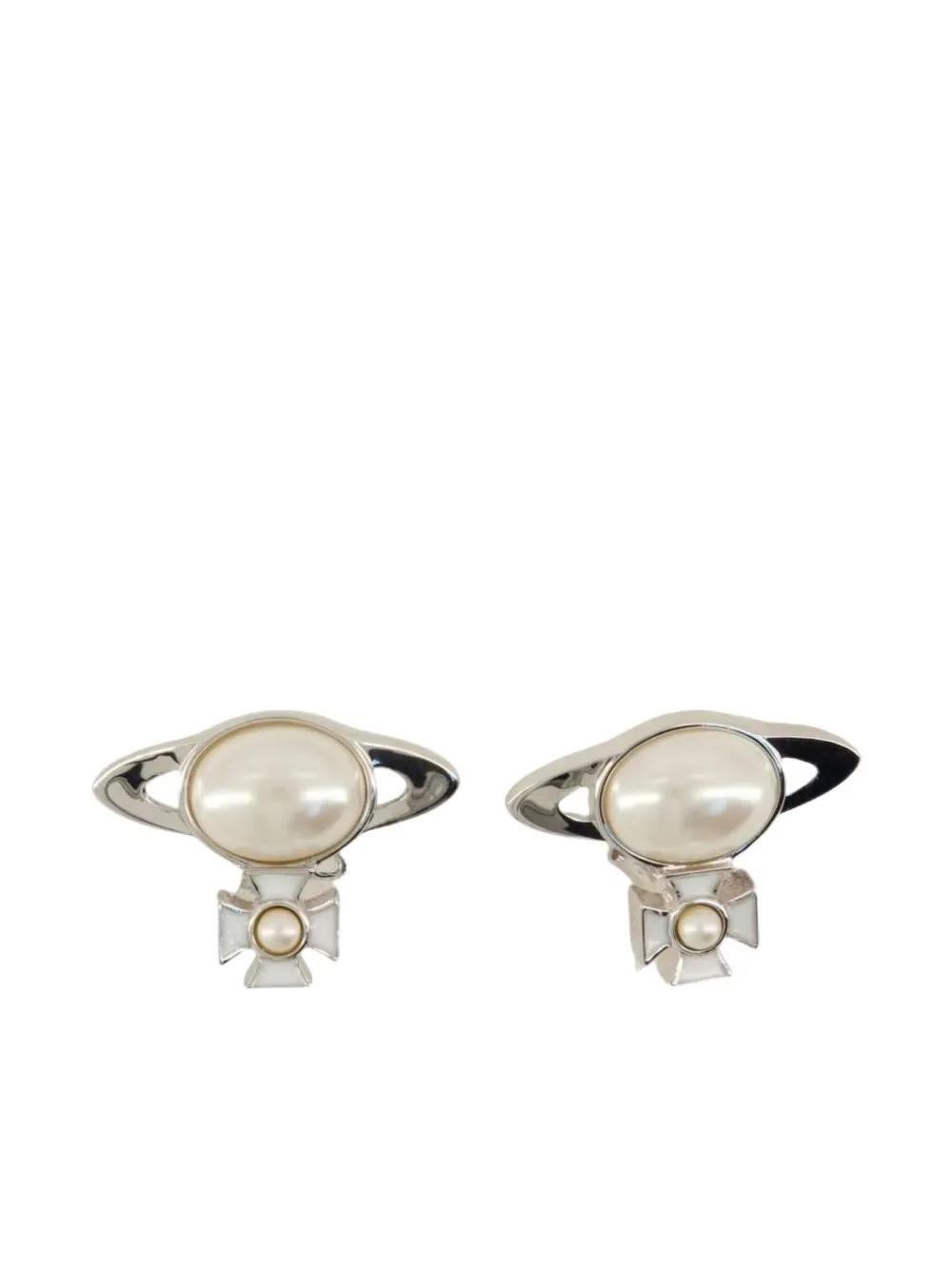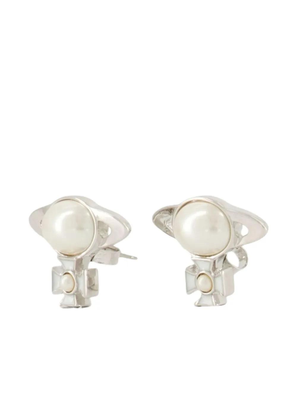 silver-tone Orb detail pearl embellishment post-back fastening cross detail