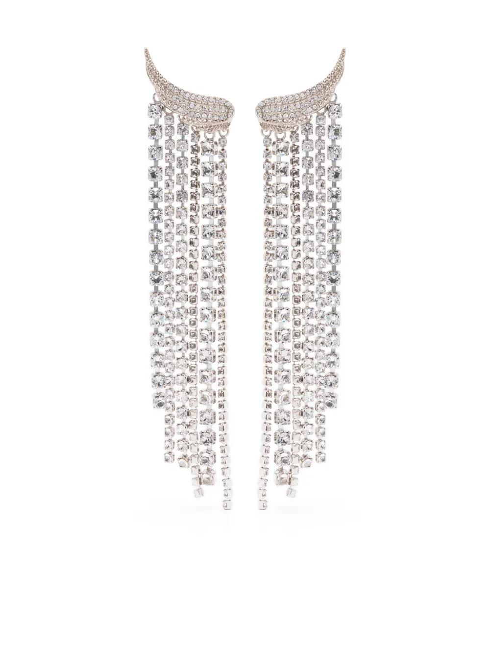 silver-tone drop design crystal embellishment polished finish post-back fastening for pierced ears These earrings come as a pair.