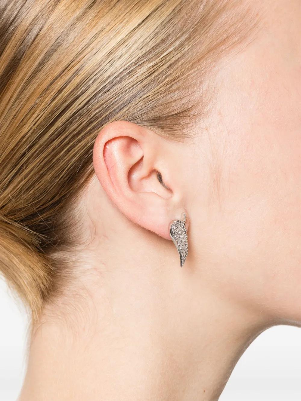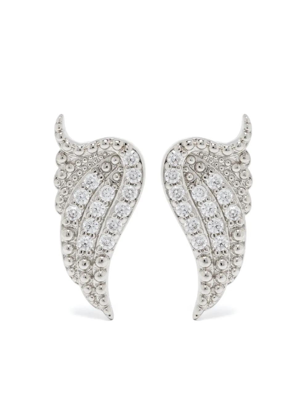 silver-tone metal polished finish signature wings motif round cut pavé setting post-back fastening for pierced ears These earrings come as a pair. This piece comes complete with a protective dust bag.