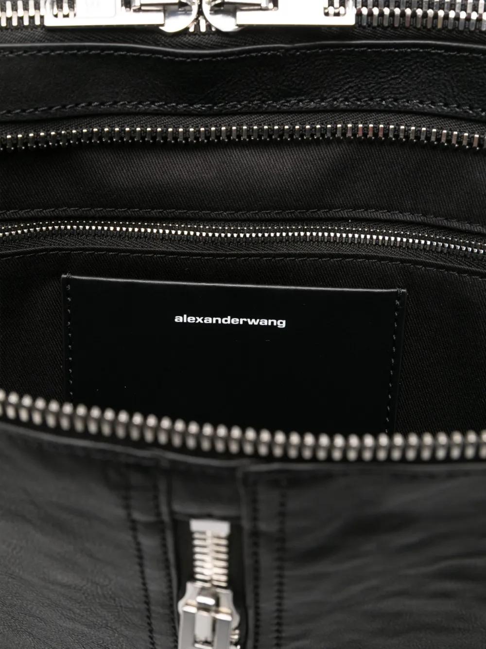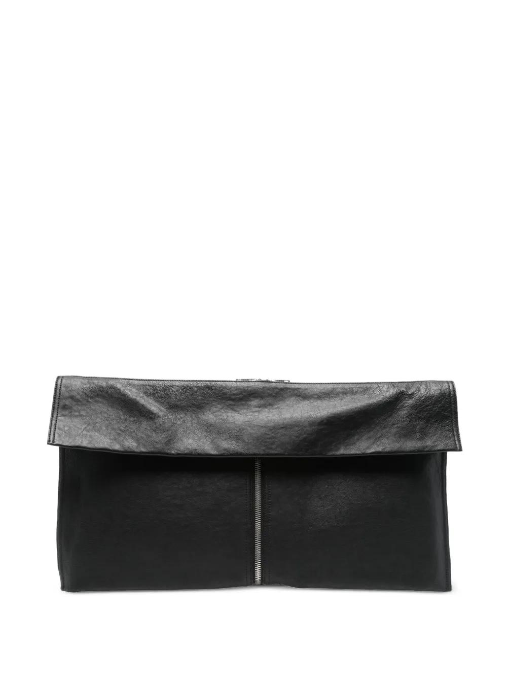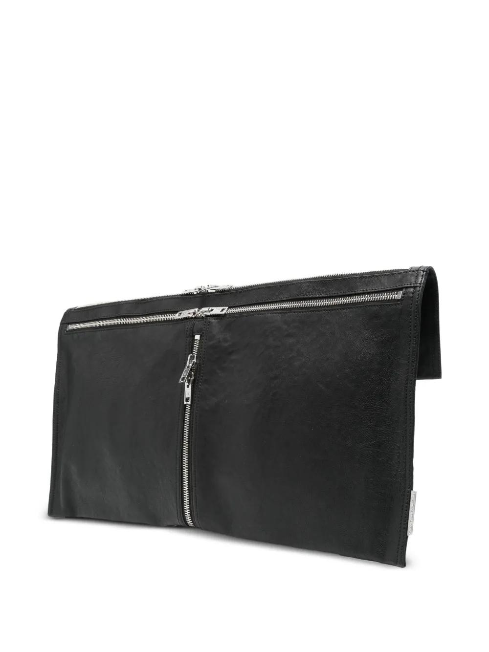 black leather construction double zip fastening flap detail top zip closure rectangular shape