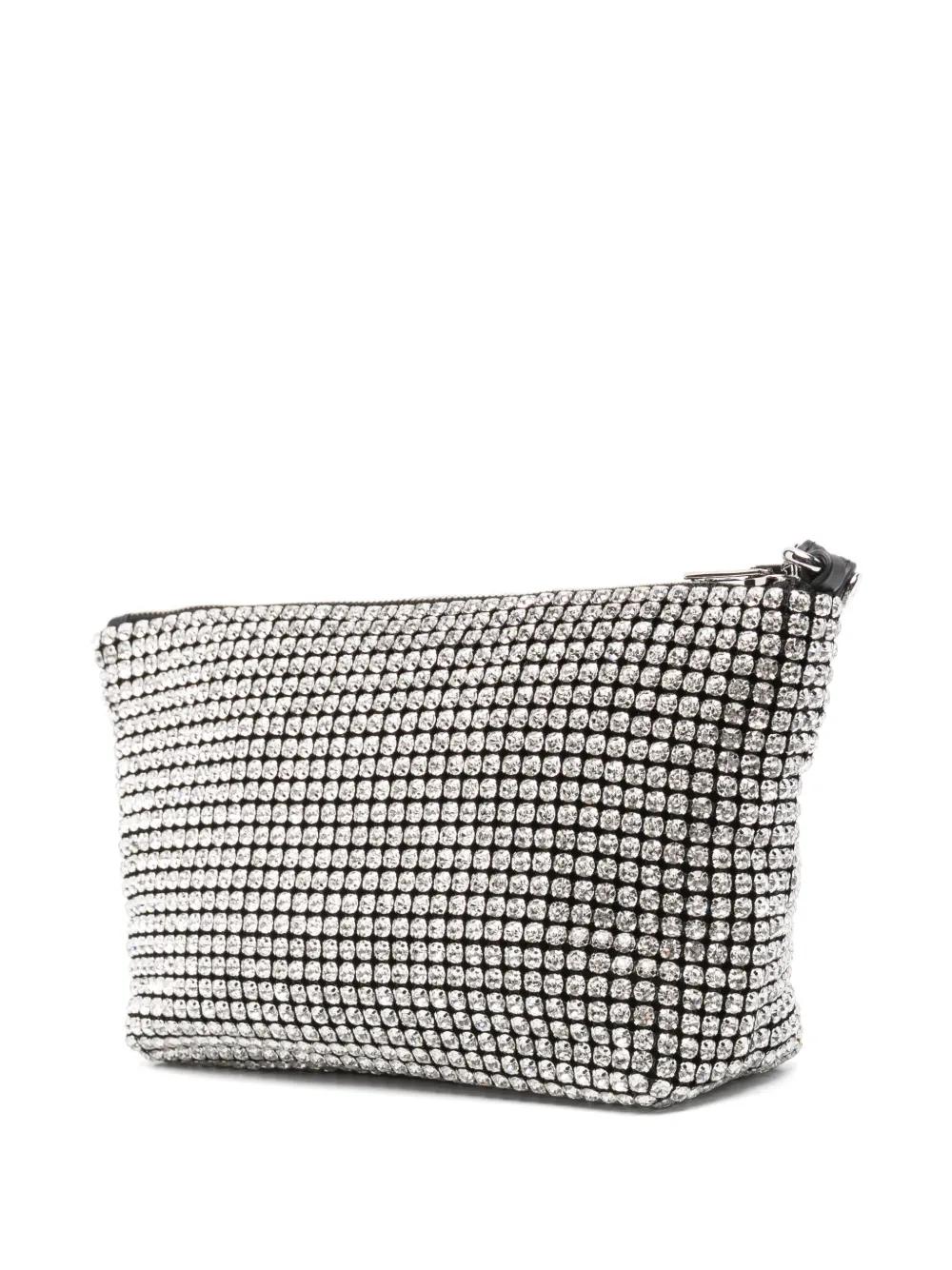 black/white glass top zip fastening detachable wrist strap crystal embellishment main compartment logo-embellished lining internal card slots