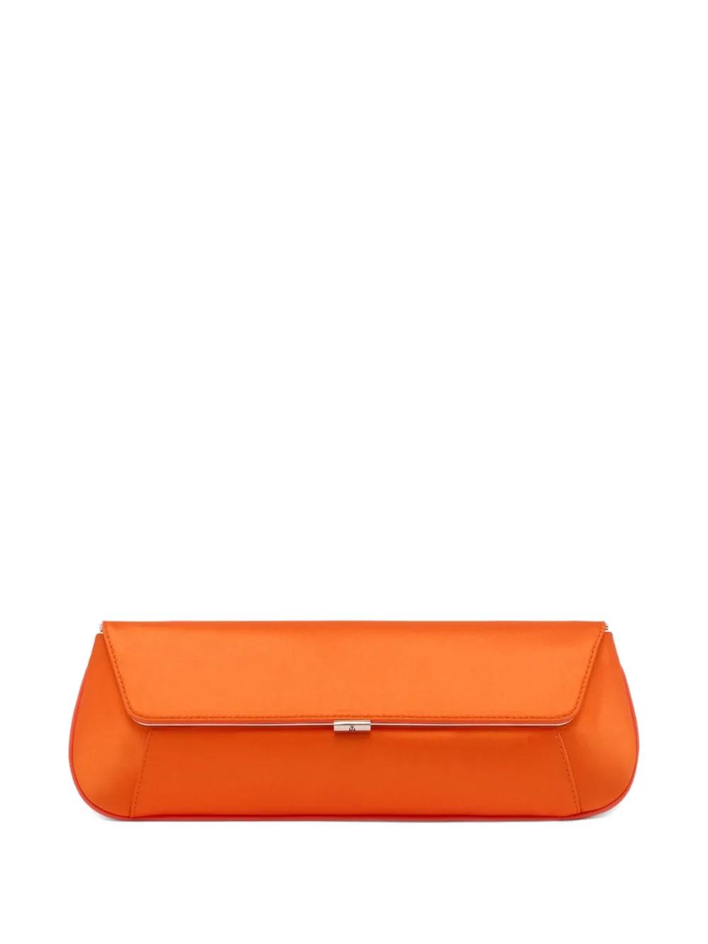 orange silver-tone hardware clasp closure curved silhouette rectangular shape internal flat pocket inside mirror frame