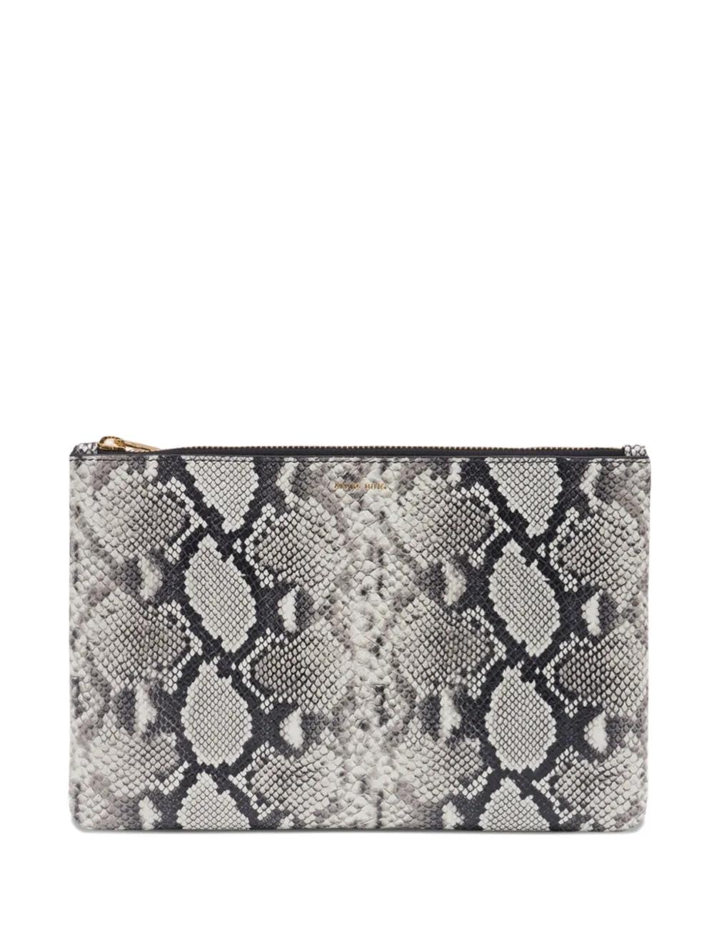 ANINE BING Elly snakeskin-print leather clutch bag - Grey