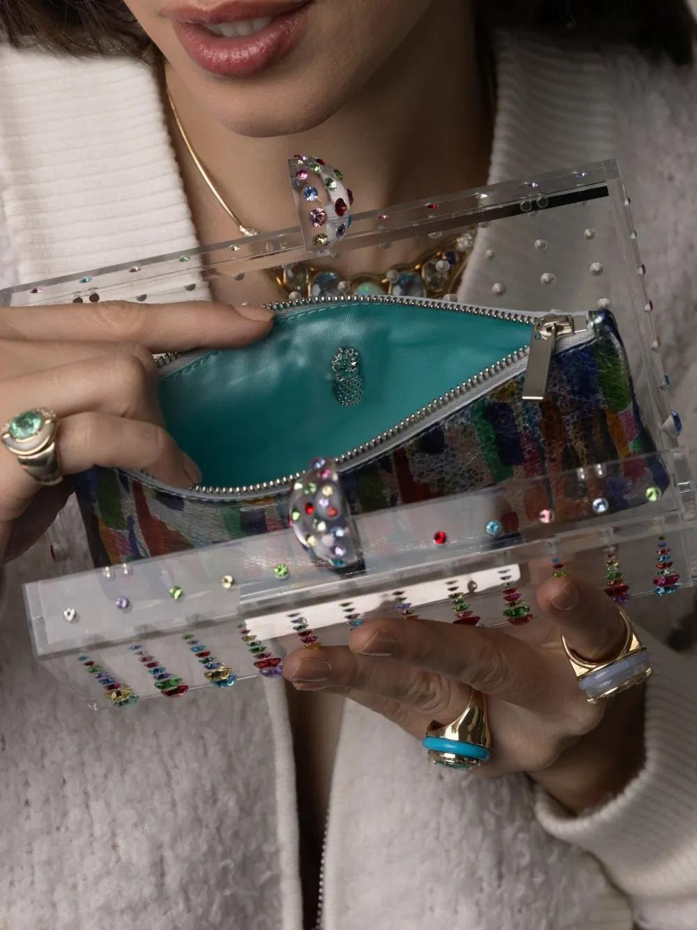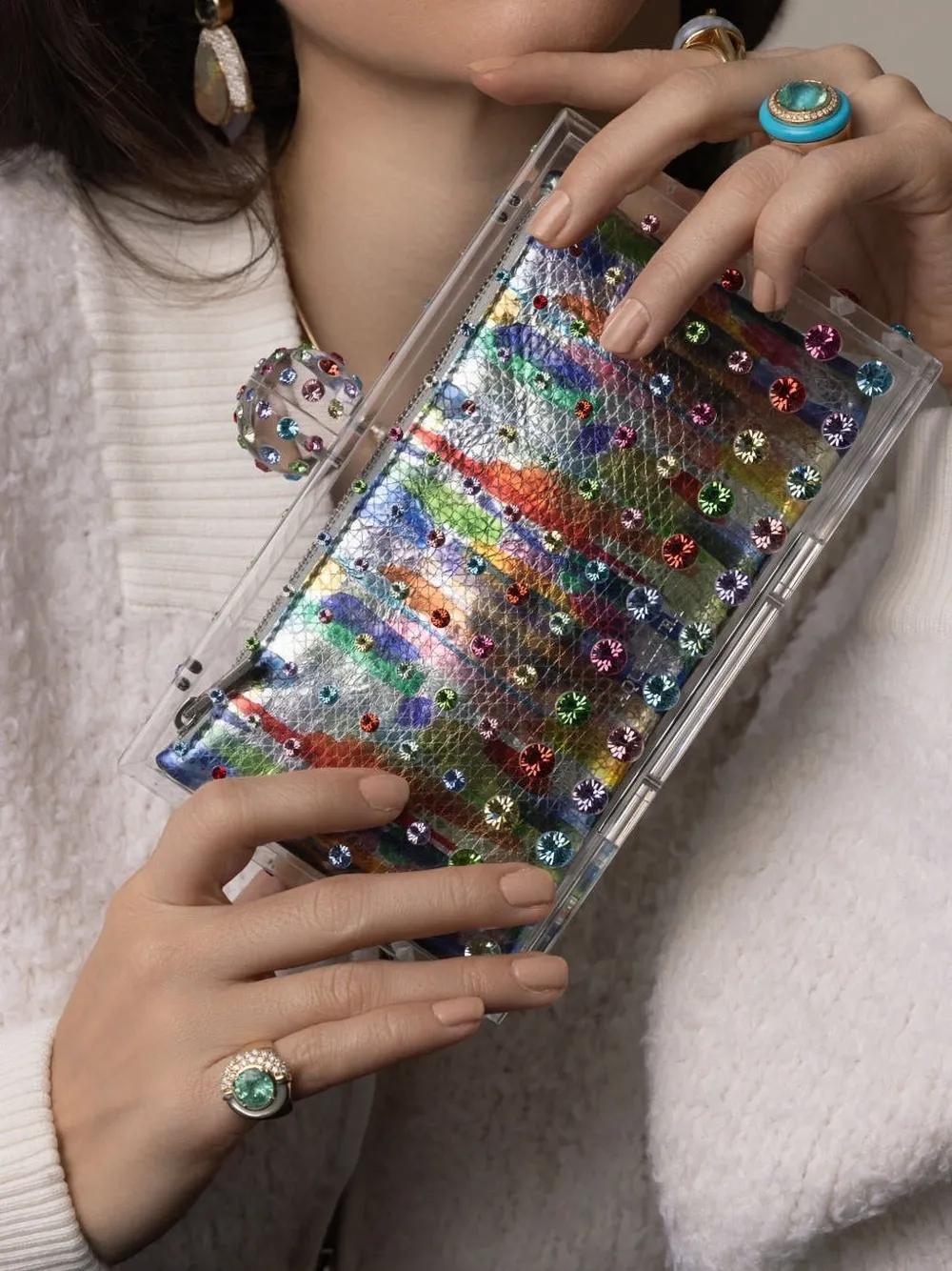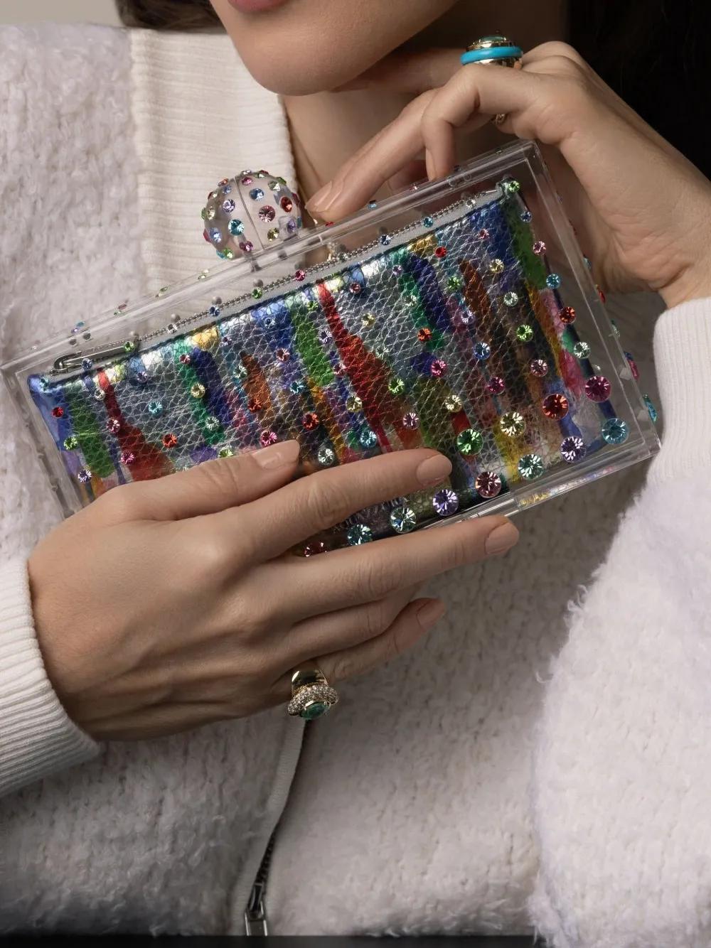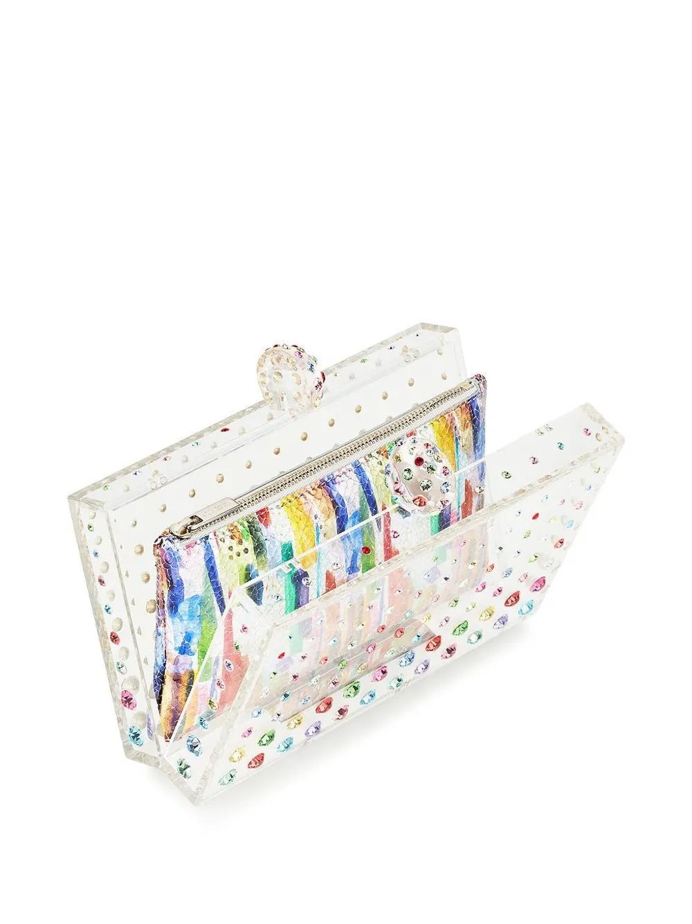multicolour rectangle shape transparent design rhinestone embellishment main compartment