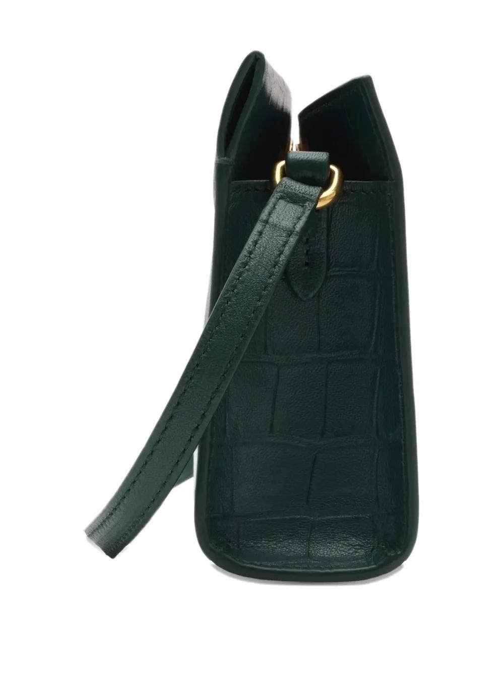 dark green crocodile-ebossing lambskin leather logo lettering gold-tone hardware wrist-strap