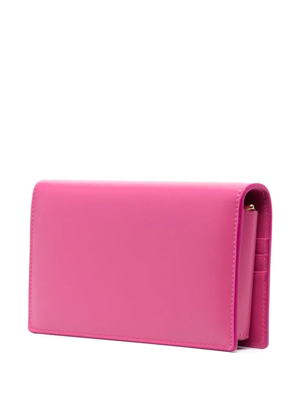 bubblegum pink calf leather embossed logo to the front tonal stitching foldover top with magnetic fastening adjustable detachable shoulder strap internal card slots internal zip-fastening pocket