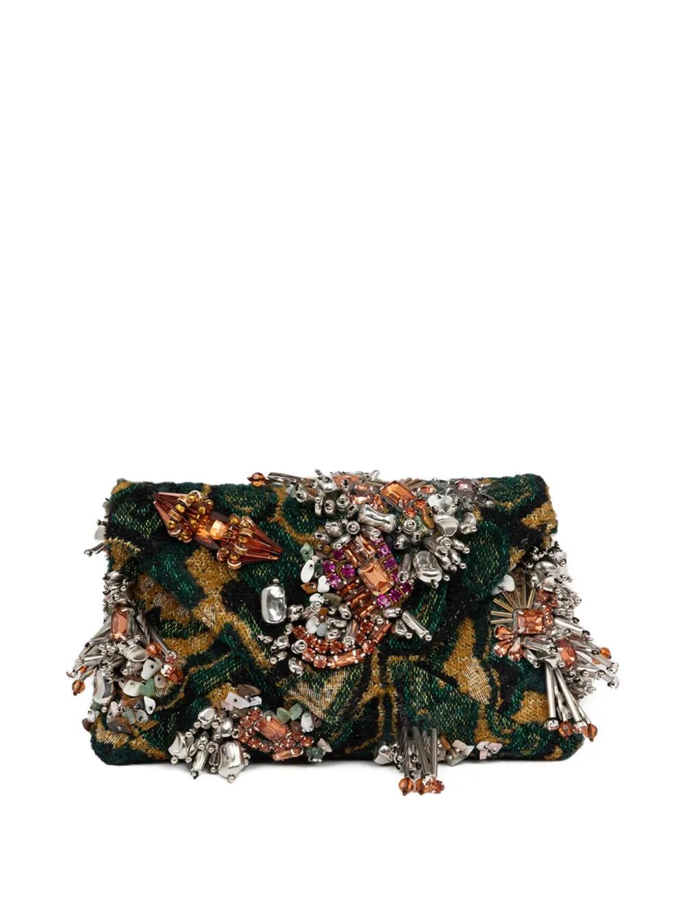 DRIES VAN NOTEN bead-embellished envelope clutch bag - Green
